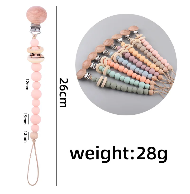 2023 New Baby Wood Beaded Pacifier Clip Silicone Chain Nipple Holder Infant Soother Teether