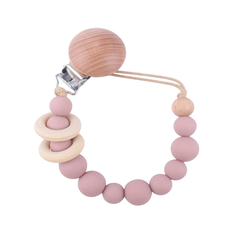 Baby Pacifier Clip Silicone Beads Bead Dummy Chain Holder Soother Chains Hemu Ring Beads wooden Clips Baby Teething Chew Toy
