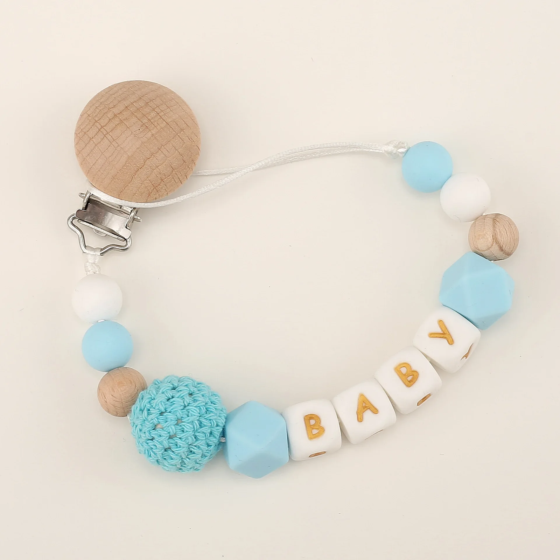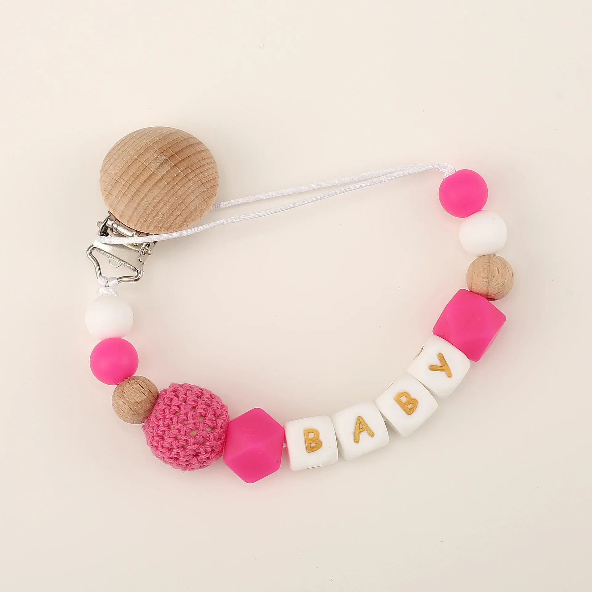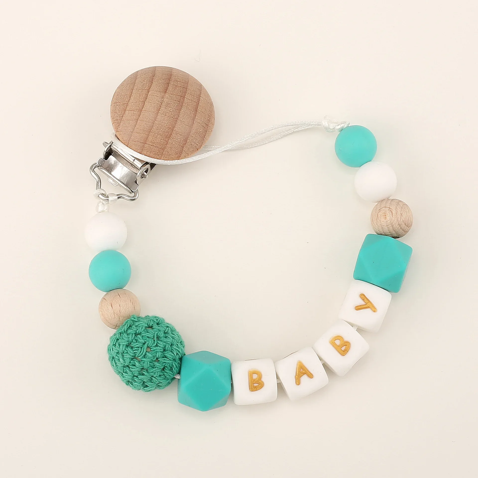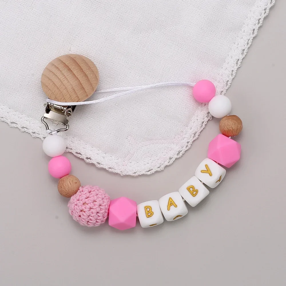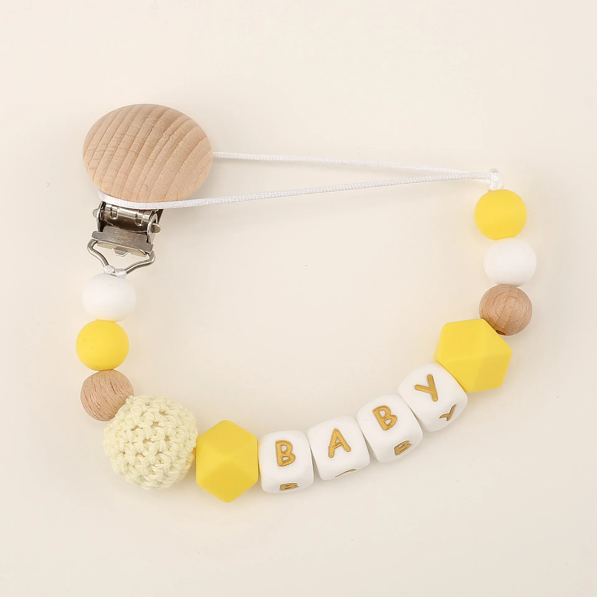 Baby Pacifier Clips Personalized Name Golden Silicone Dummy Nipple Holder Clip Chain Teething Toys Pacifiers Feeding Accessories