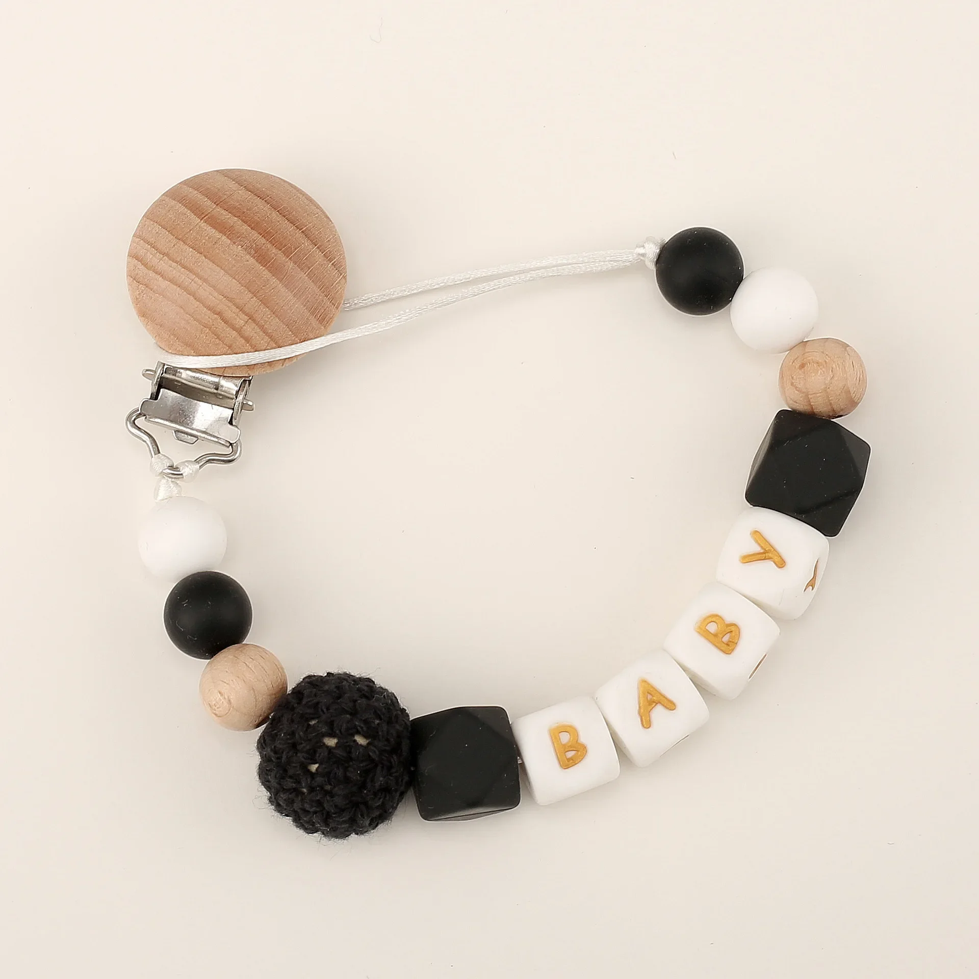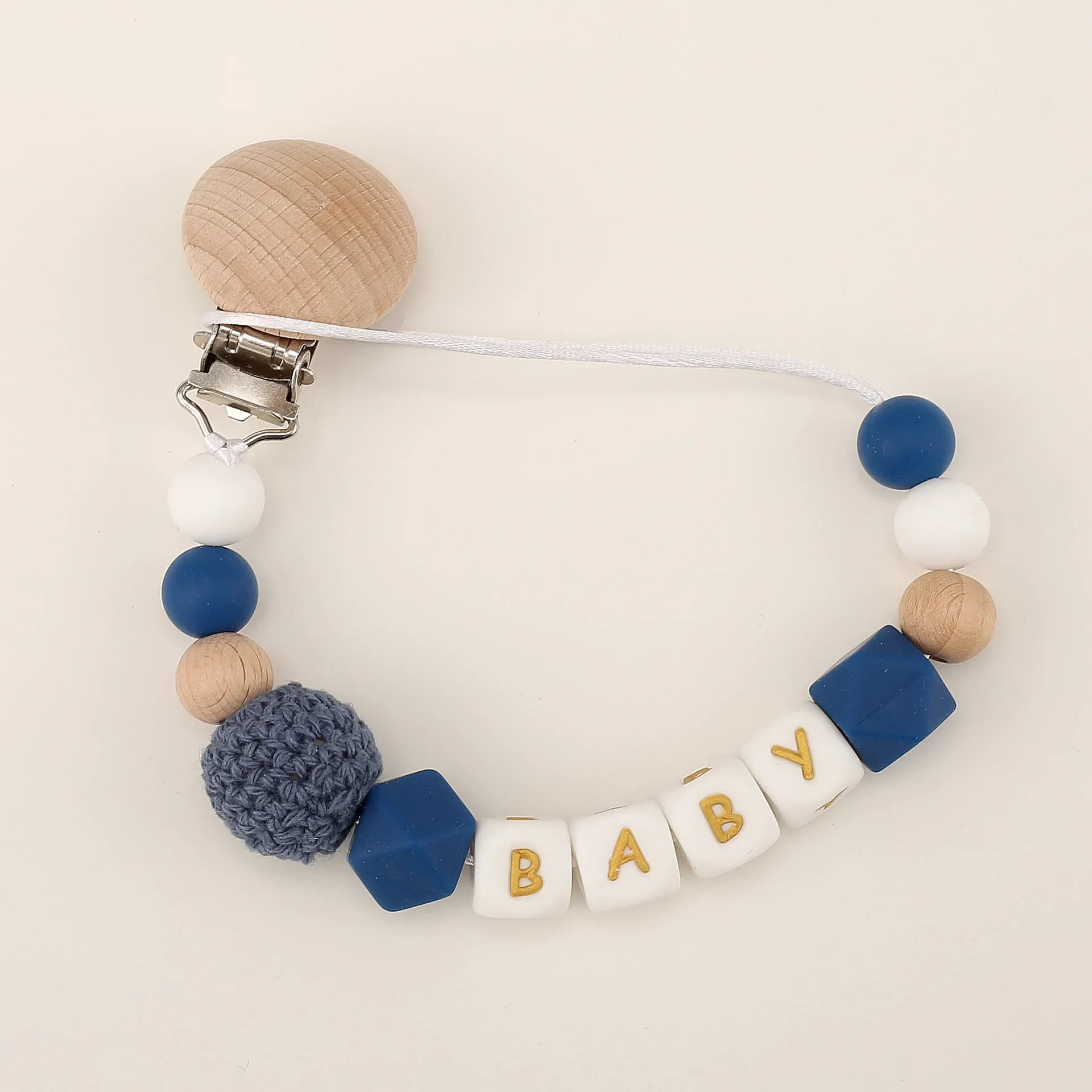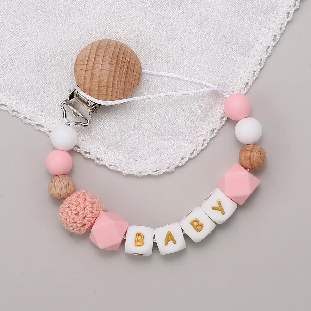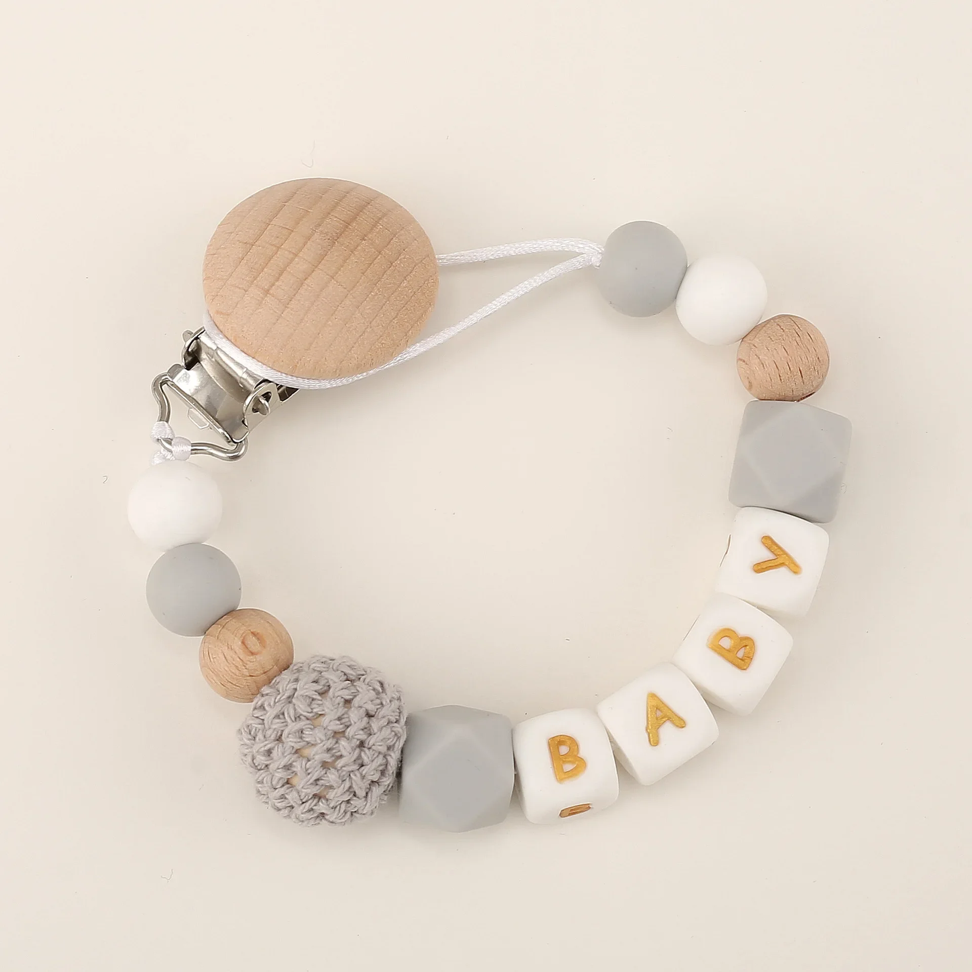 Baby Pacifier Clips Personalized Name Golden Silicone Dummy Nipple Holder Clip Chain Teething Toys Pacifiers Feeding Accessories