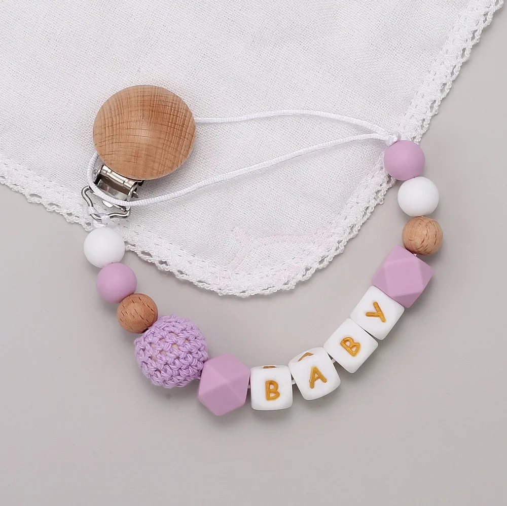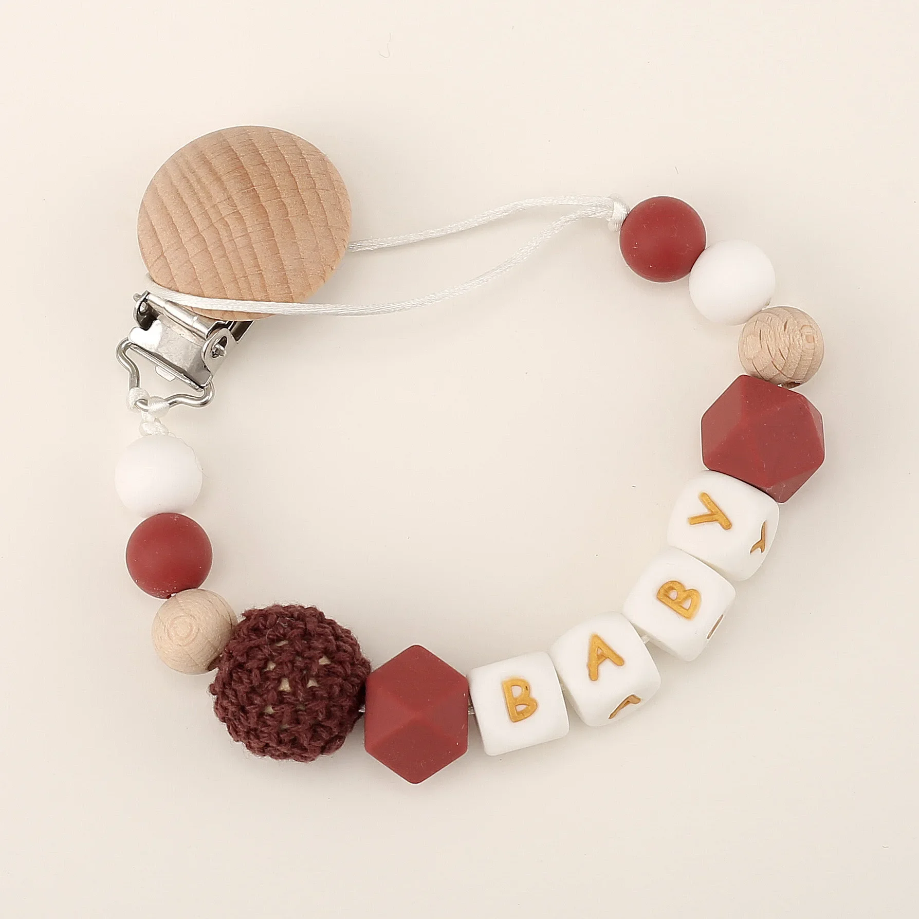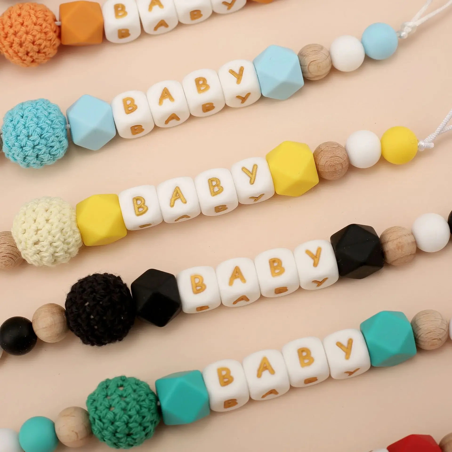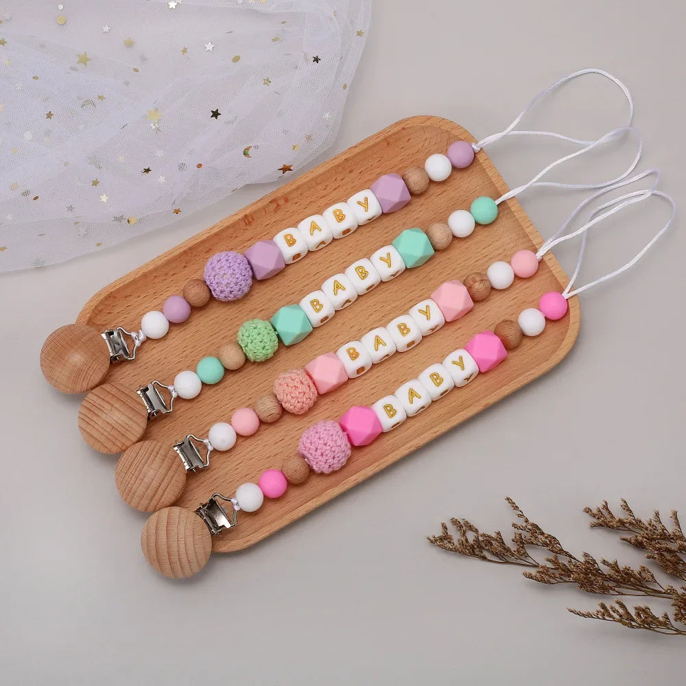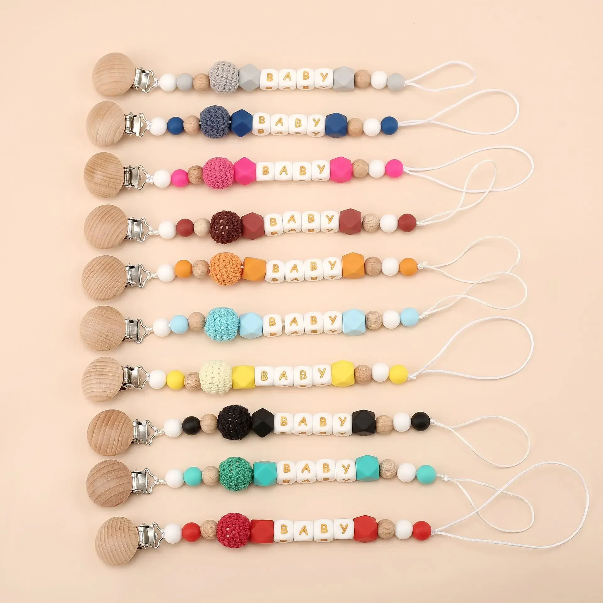 Baby Pacifier Clips Personalized Name Golden Silicone Dummy Nipple Holder Clip Chain Teething Toys Pacifiers Feeding Accessories