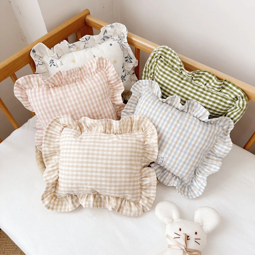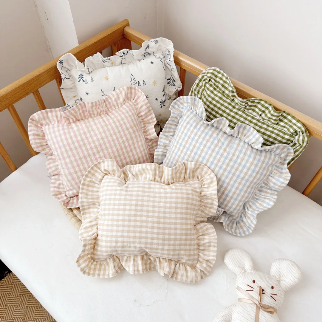 Baby Pillow with Ruffles Muslin Nordic Style Removable Washable Cotton Cushion for Baby Newborn Bedding Pillows 28*34cm