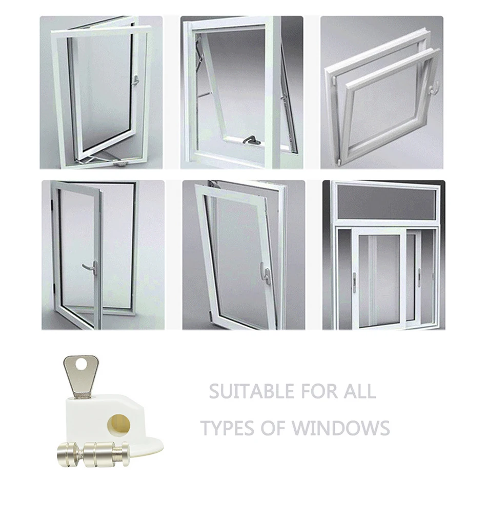 Window lock:Use four screws to fix (we will give away screws). More solid. Suitable for most windows. The size of the opening can be adjusted.