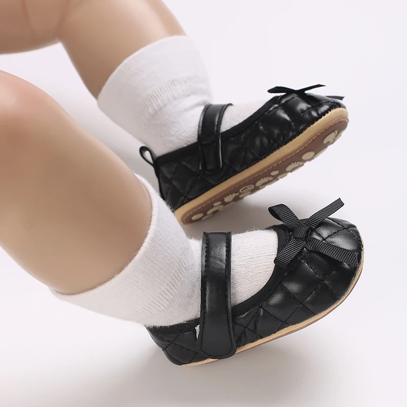 Baby Shoes Newborn Girls Princess PU Preschool Shoes Formal Shoes Bow Princess Wedding Party Anti slip First Step Shoes 0-18M