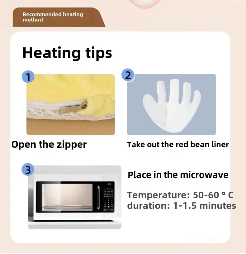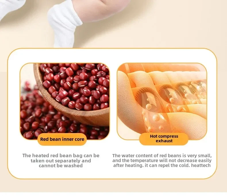 【Safe Materials】 It's made from safe, skin-friendly materials that feel soft and breathable, making it suitable for children. Filled with red beans, it is warm and comfortable after heating.