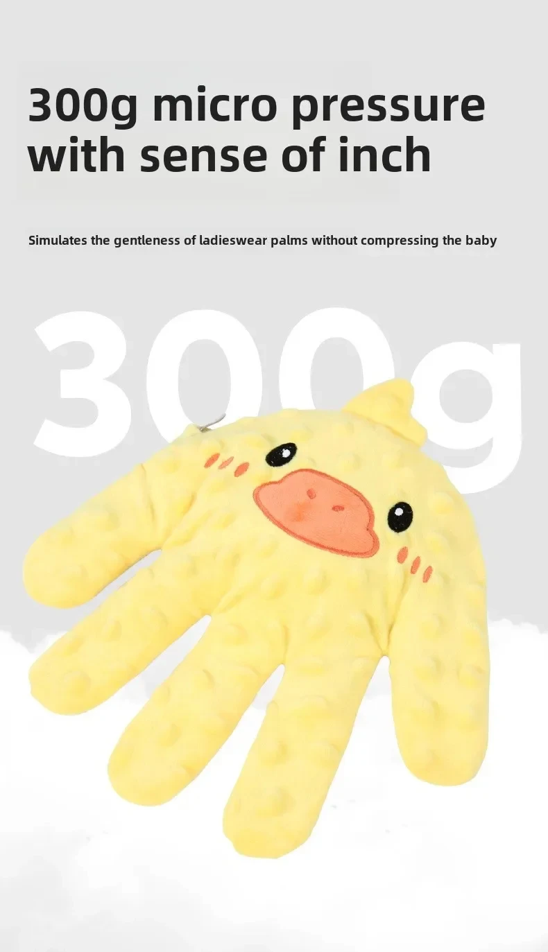 【Creative Design】 Our Baby Soothing Palm is shaped like a cute little animal. Its engaging appearance is intended to attract and entertain infants, providing them with both comfort and enjoyment.