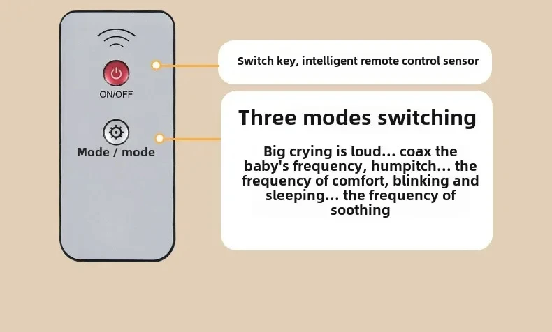 【Automatic Soothing】 Using innovative technology, our product imitates parents' patting action and gently helps the baby fall asleep easily. Parents can control its speed and intensity through the remote control to provide customized soothing experience.