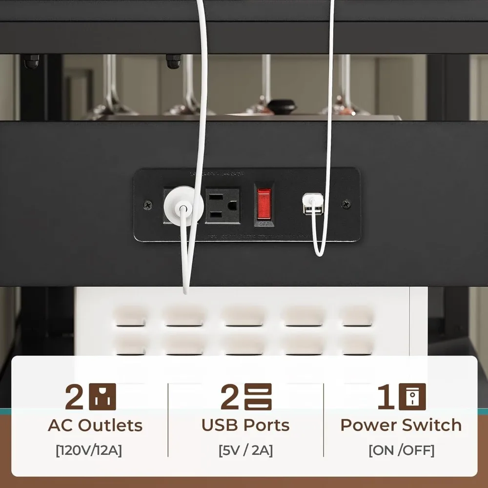 - 【Bakers Rack with Power Outlets】This coffee bar is equipped with 2 AC outlets, 2 USB charging ports to provide power for up to 6 devices simultaneously. The switch is convenient and safe to turn off power, no need to unplug appliances at all times. Of course our baker rack comes with RGB LED light strip which can not only increase the atmosphere of the kitchen but also brighten the work area so that you can operate at night.