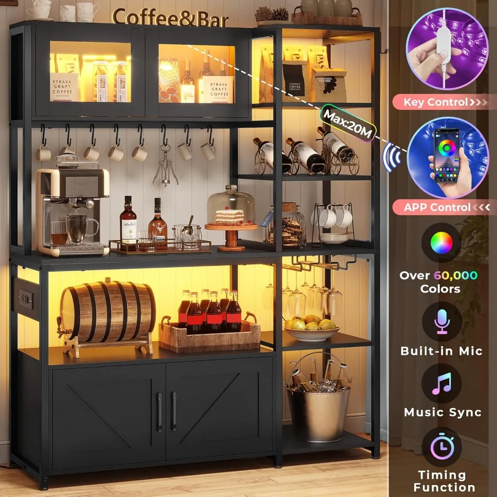 - 【Cool & Smart Led Light】The coffee bar comes with RGB LED light strip, remote control via APP, Over 60000 colors and 29 flashing modes for your to choose. Led light strip with music sync function, built-in sensitivity adjustable mic, led light color will change with the rhythm of the sound and music.