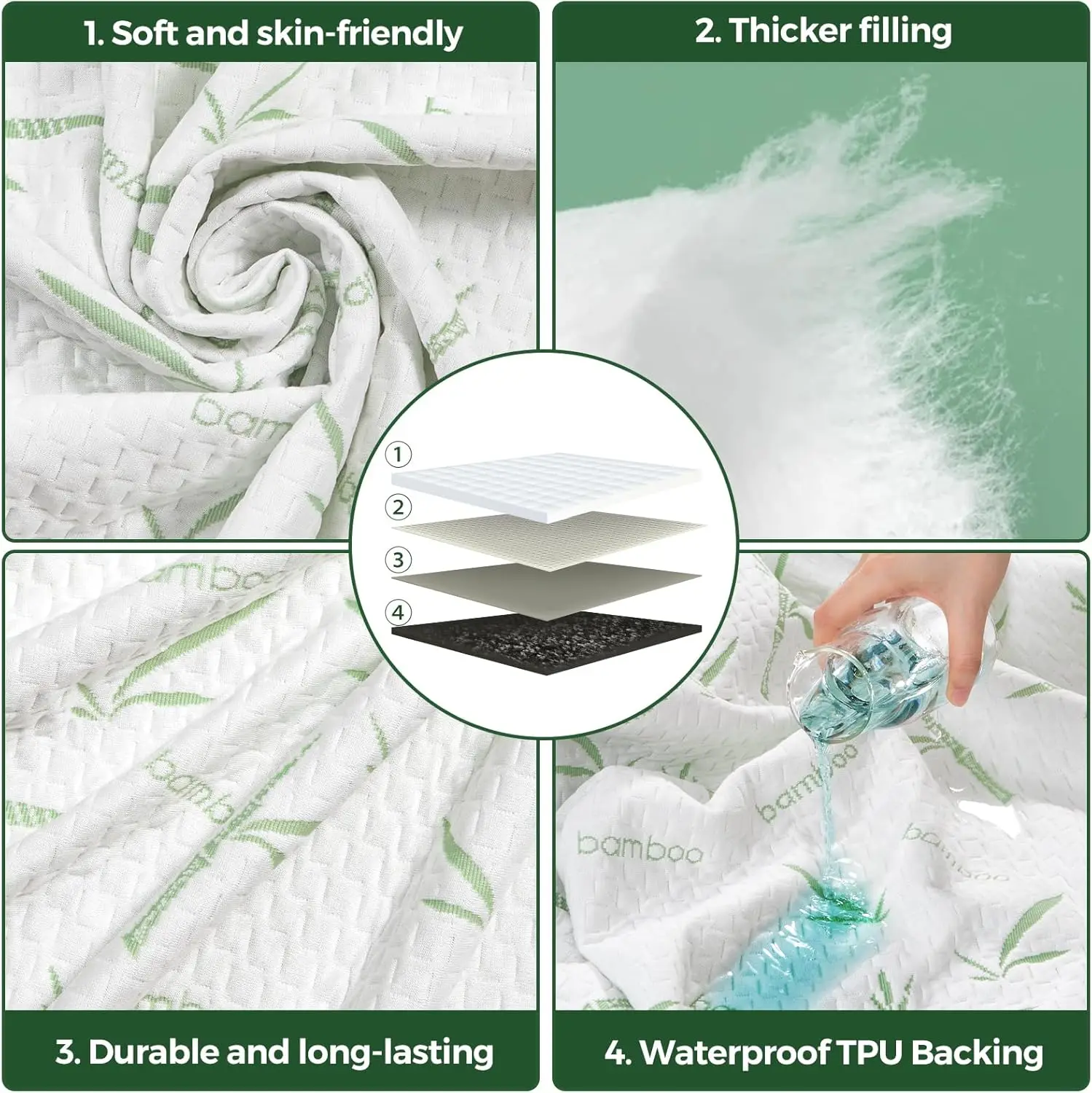 Bamboo Fiber Jacquard Mattress Protector, Waterproof & Ultra Soft Breathable , Deep Pocket, Machine Washable