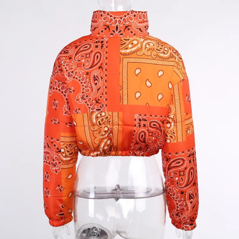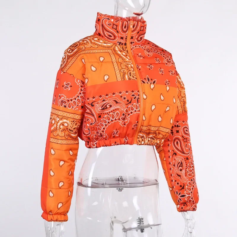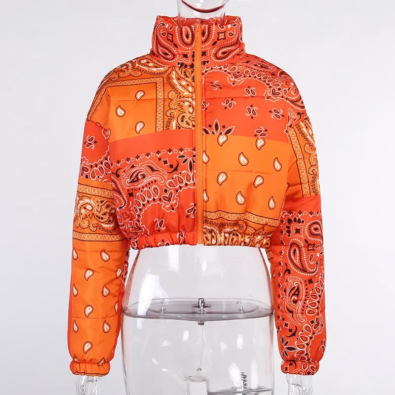 Bandana Coat Casual Paisley Printed Bubble Jacket Women Winter Long Sleeve Zip Down Coat Outfit Warm Puffer Parks Coat Overcoat