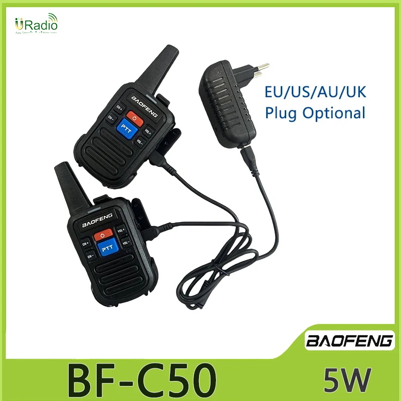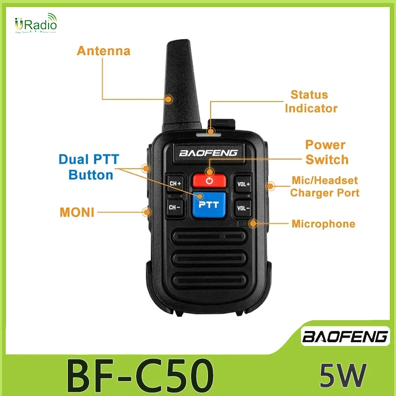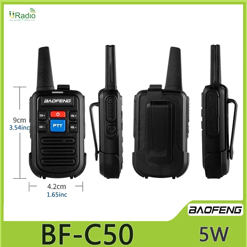 Baofeng BF-C50 Mini Walkie Talkie UHF Dual PTT 5W Kids Woki Toki Type-C Charger Child Intercom HF Transceiver 1500mAh Ham Radio