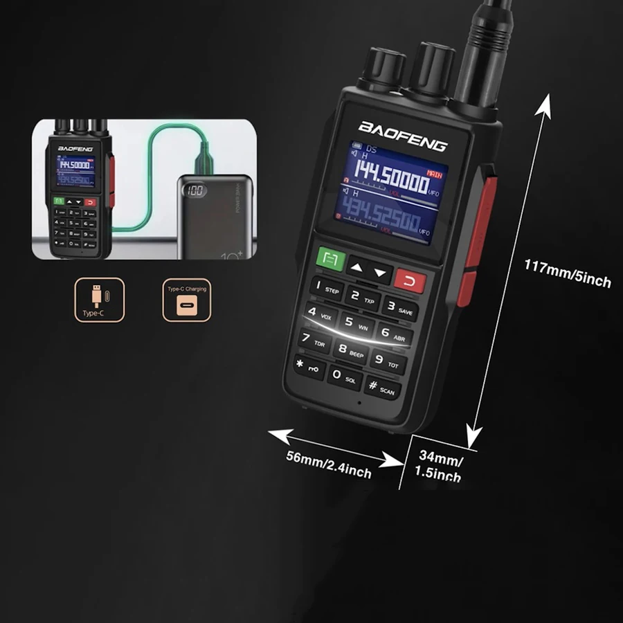 Quansheng Walkie Talkie UV-K5 Long Range Air Dual-Band 2-Way Radio 5W High Power 1600mAh Portable 200 Channel Free TPYE-C Cable