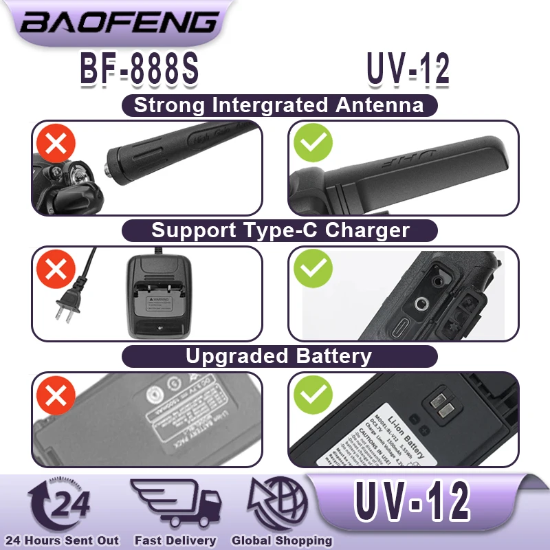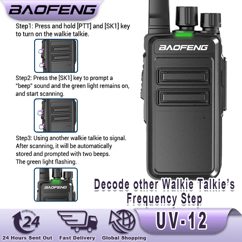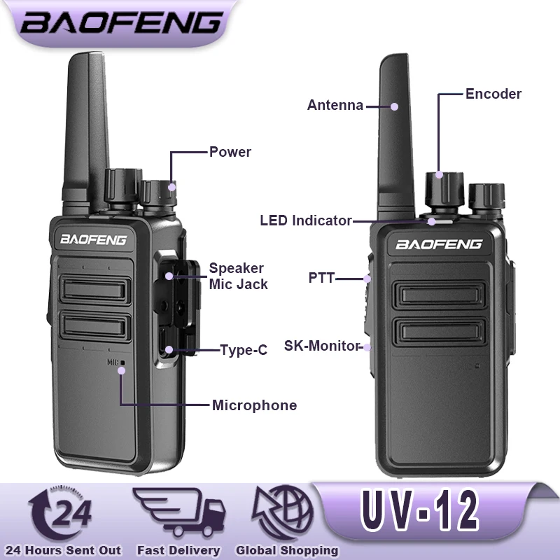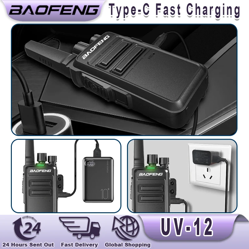 Baofeng UV-12 Walkie Talkies Wireless Copy Frequency Long Range for Camping Hiking TYPE-C Rechargeable Two Way Radio for Adults