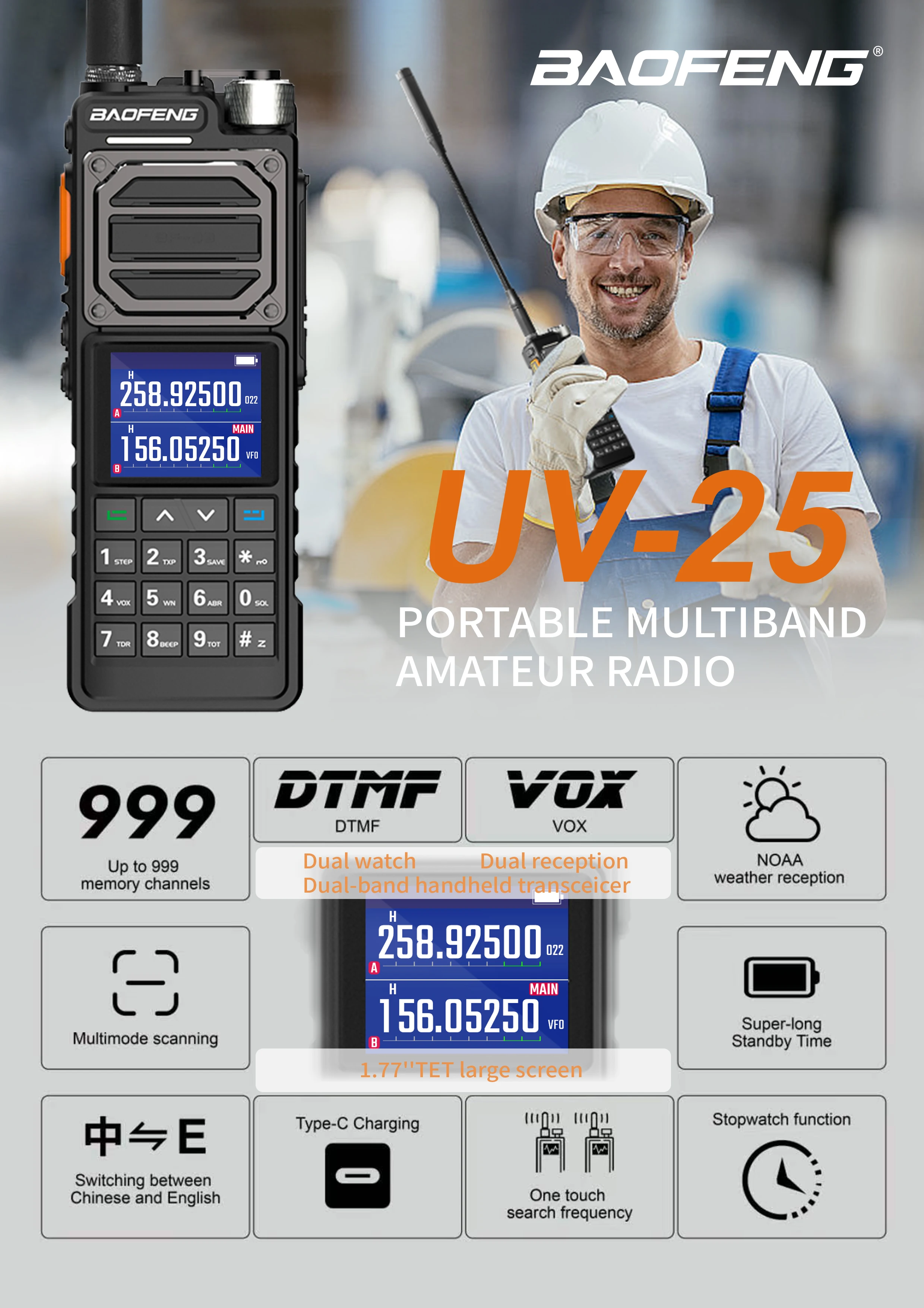 BAOFENG UV-25 10W Tactical Walkie Talkie Wireless Copy Frequency Type-C Profesional Two Way Ham Radio HF Transceiver NEW Upgrade