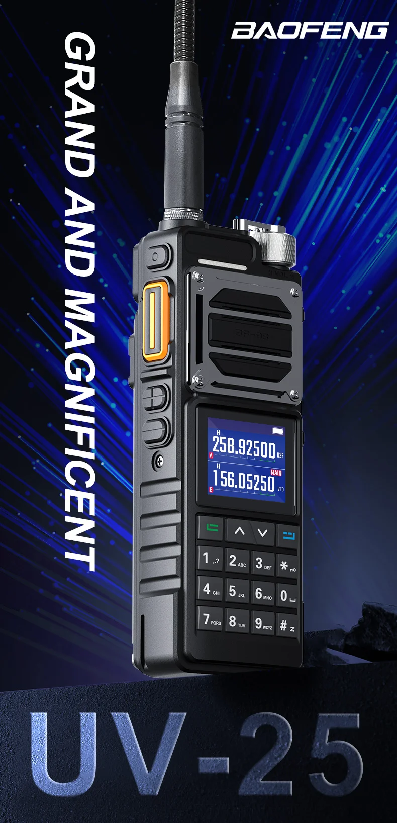 The UV-25 series is available in L and M versions.This link version is the M version of the UV-25 series. This version is SUPPORTS AM108-136, Police350- 390MHz, Scanning Reception, and Voice Scrambling Functions.