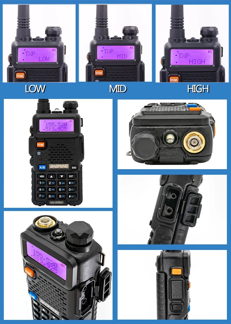 Baofeng UV 5R Walkie Talkie 5W 8W High Power Dual Band Ham Two Way Radio Vhf Uhf FM Radio Handheld Transceiver Hunting 16KM