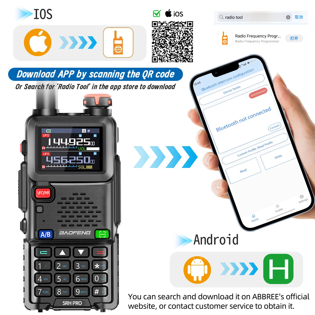 Baofeng UV-5RH PRO GPS Walkie Talkie Bluetooth Programming 10W Multi Band AM/FM Long Range Two Way Radio Shipping Cruise Travel