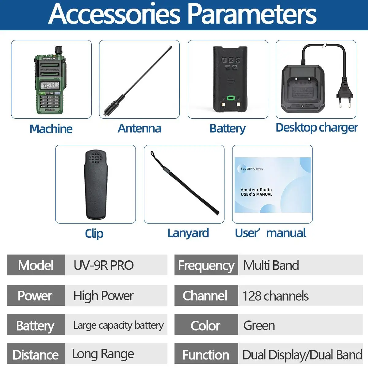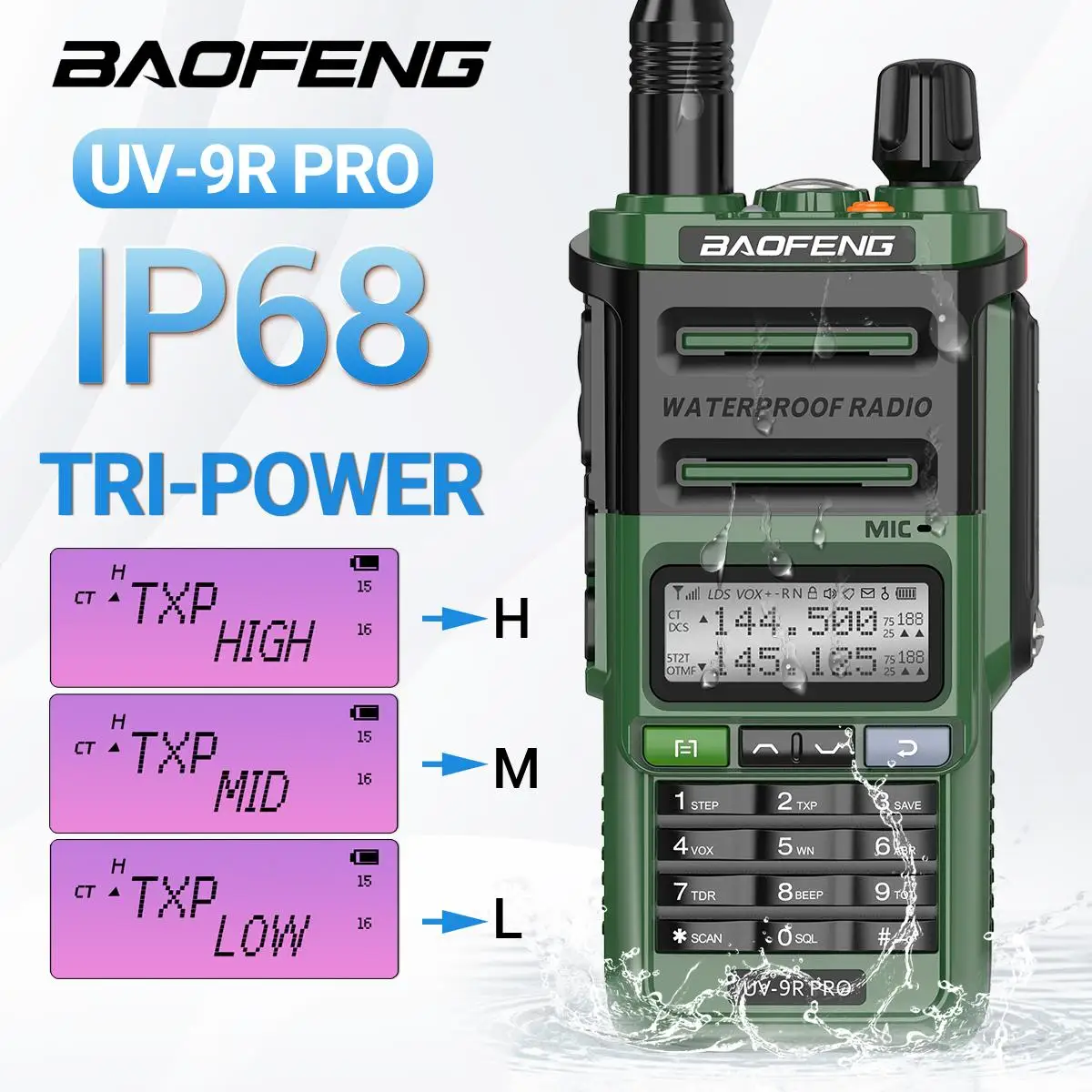 Baofeng UV-9R PRO Multi Band Walkie Talkie IP68 Waterproof Wireless Copy Frequency AM FM DTMF Type-C Long Range Two Way Ham Radio