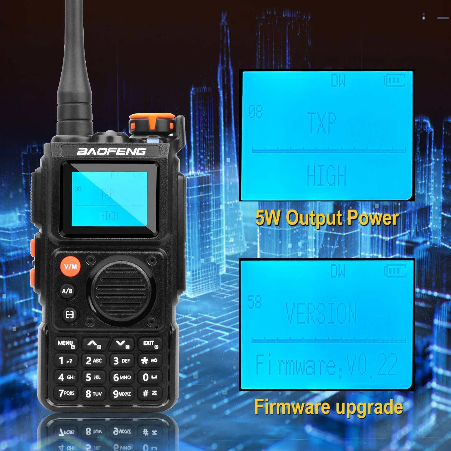 Baofeng Walkie Talkie K6 Aircraft Multi-Band 999Ch 5W 1.44″ Screen Wireless Freq Copy 1750Hz Noise Cancel Dual Wait FM Radio