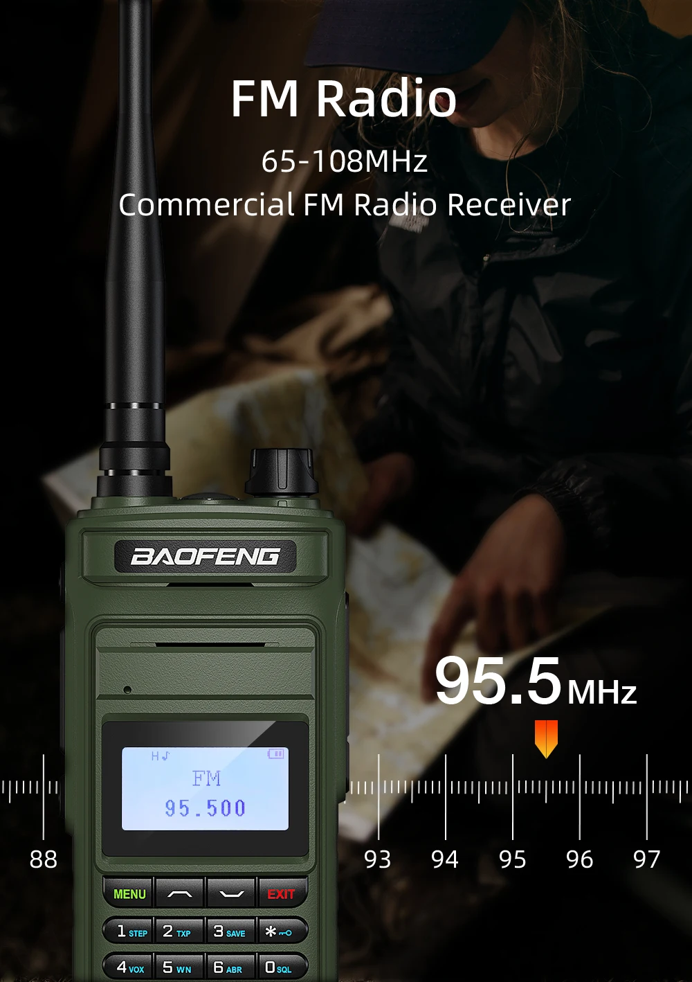 FM radio 76-108 MHz; AM aviation frequency band: 108-136MHz (RX)