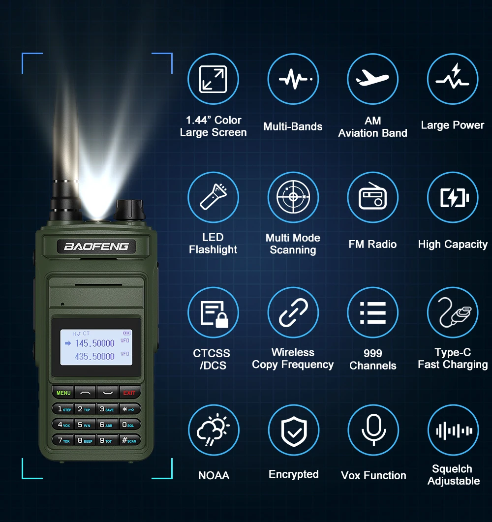 Baofeng Walkie Talkie P15UV Air Band FM/AM Long Range Wireless Copy Frequency NOAA Multi-Bands Two Way Radio Type-C Ham Radios