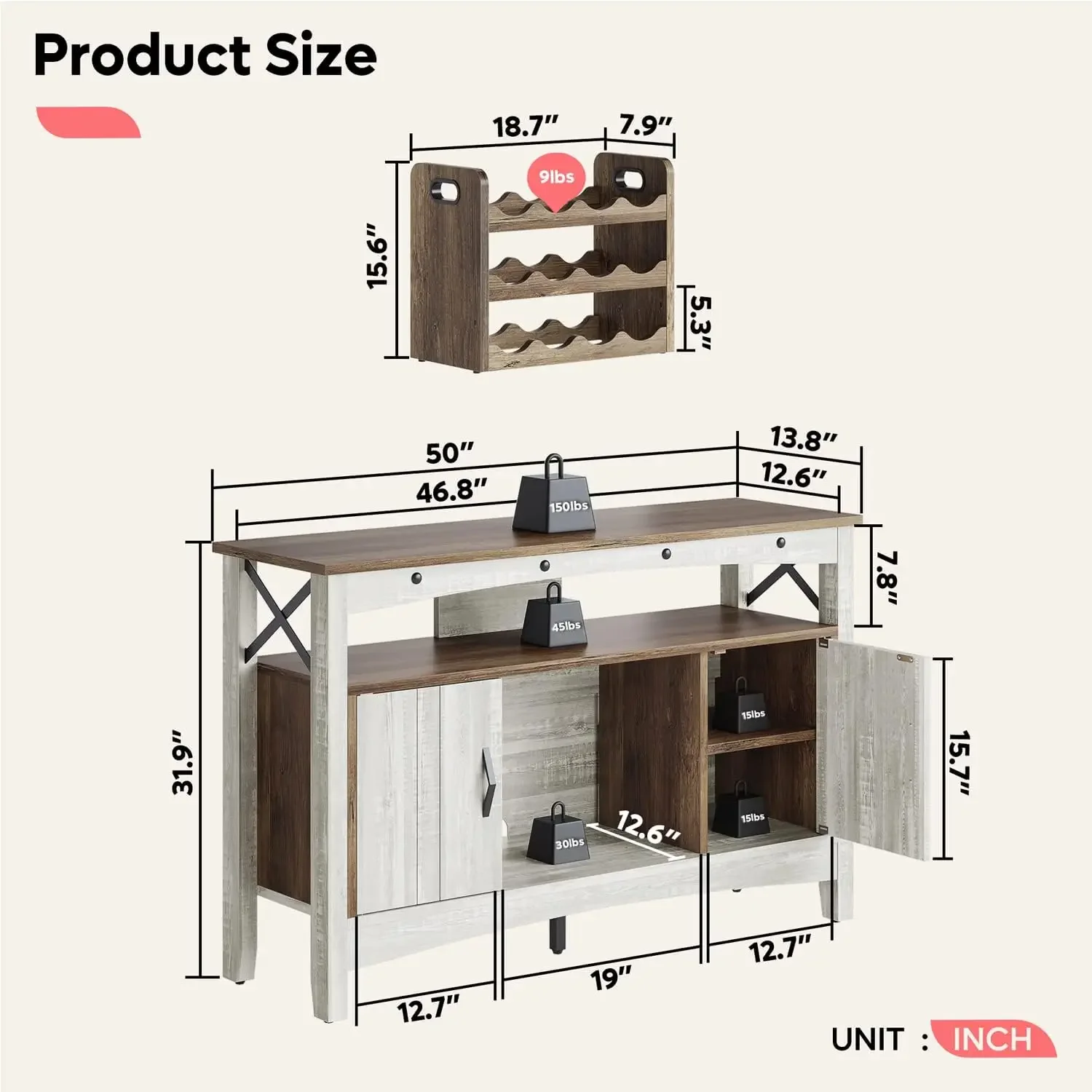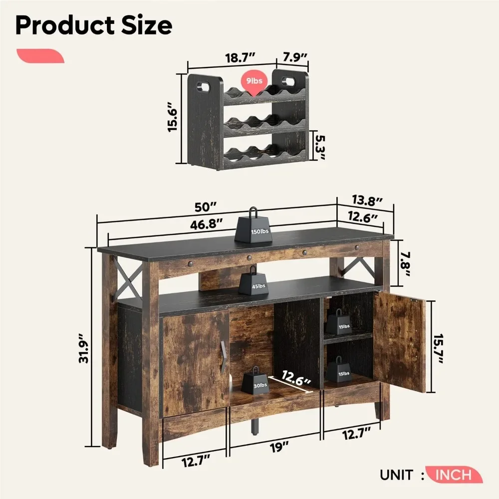 - Versatile: The sideboard buffet cabinet can be as a coffee bar,alcohol bar cabinet,storage console table,console tables for entryway,TV stand,kitchen cupboards,etc.