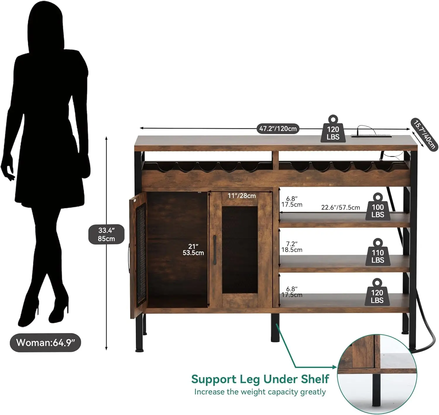 - Bar Cabinet with Built-in Outlet: This coffee bar cabinet is designed with 2 three-hole sockets and 2 USB ports for user convenience; Enjoy easy access to coffee machines, ice machines, or to charge mobile phones and tablets