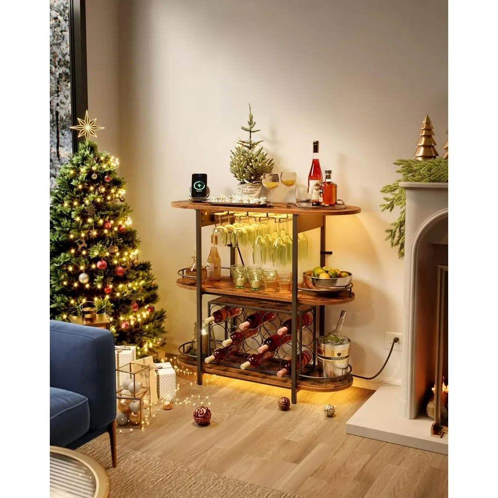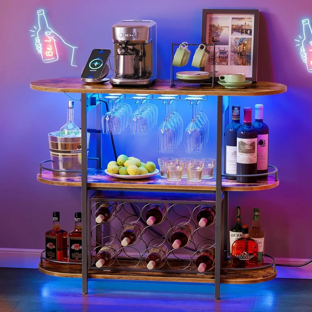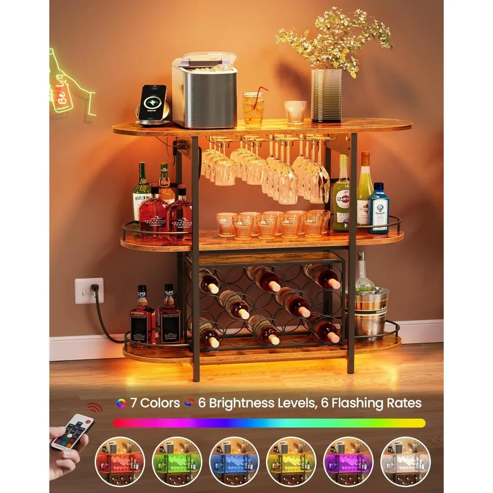 Bar Cabinets for Home, LED Coffee Bar with Power Outlets, Home Mini Bar for Liquor, Freestanding Wine Rack with Glass Holder
