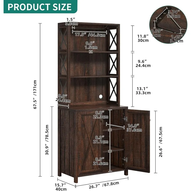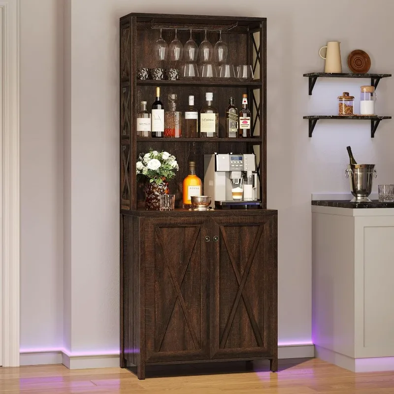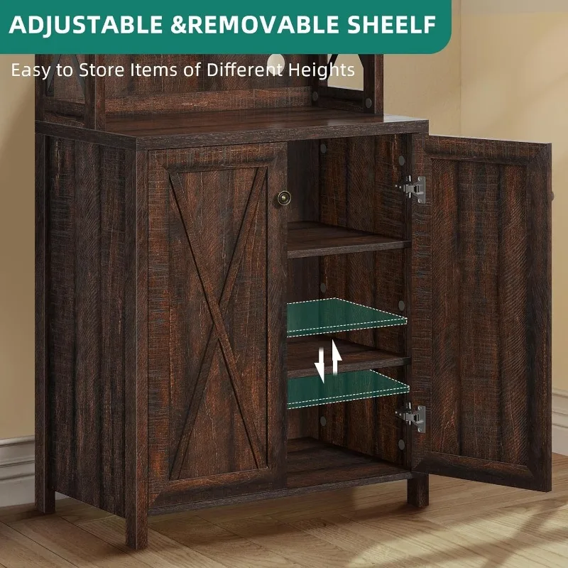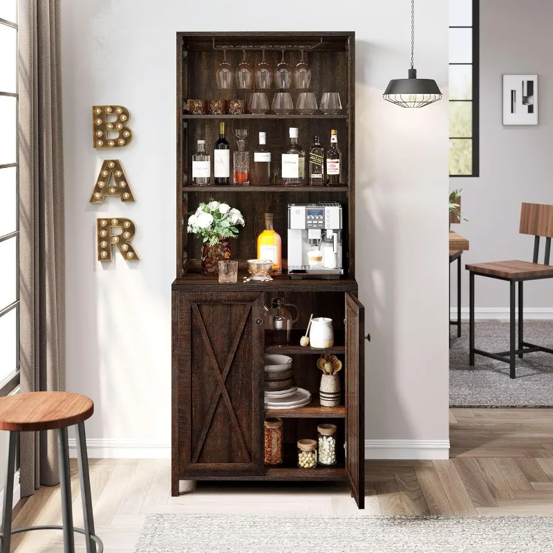 - Multi-purpose: Featuring an exquisite mix of open storage shelves and cabinet with hidden 3-tier shelves, our YITAHOME tall bar cabinet functions as home bar, microwave stand, buffet, sideboard, coffee station, etc, meeting your various storage needs of kitchen, pantry, dining room, living room or bar