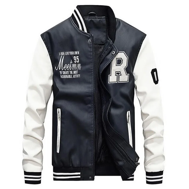 Baseball Jackets Men Slim Fit 2024 Stand Collar Leather PU Coat New Mens Zipper Jacket Jaquetas De Motocicleta Bomber Jacke Men