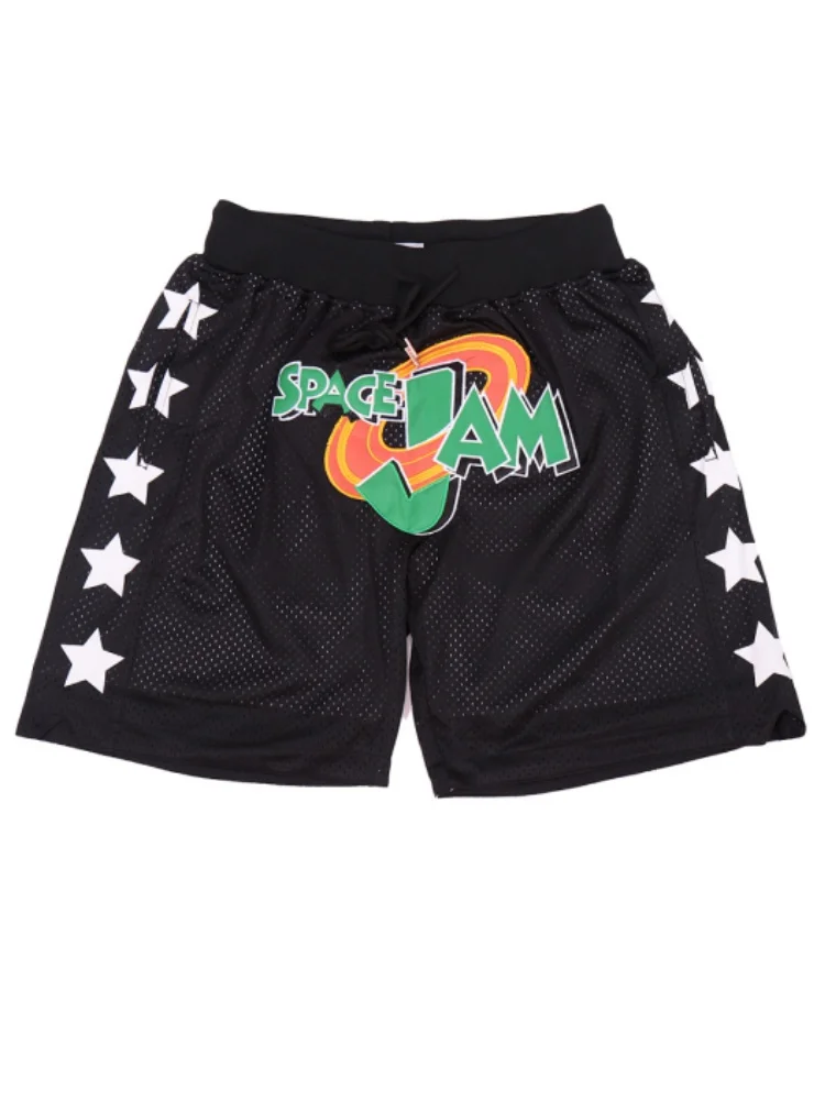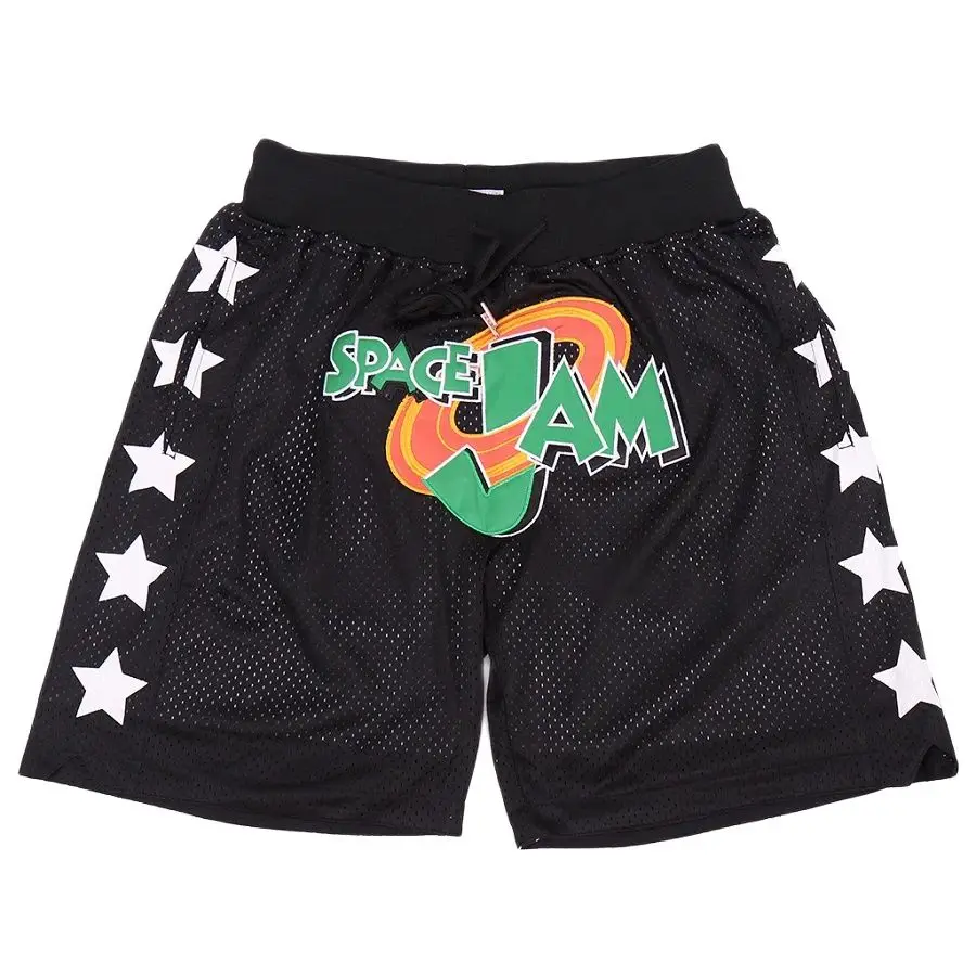 Basketball Shorts Summer Fashion Men’s Sports Casual Fitness High Quality Beach Pants SPACE JAM Sewn Embroidered Black Mesh