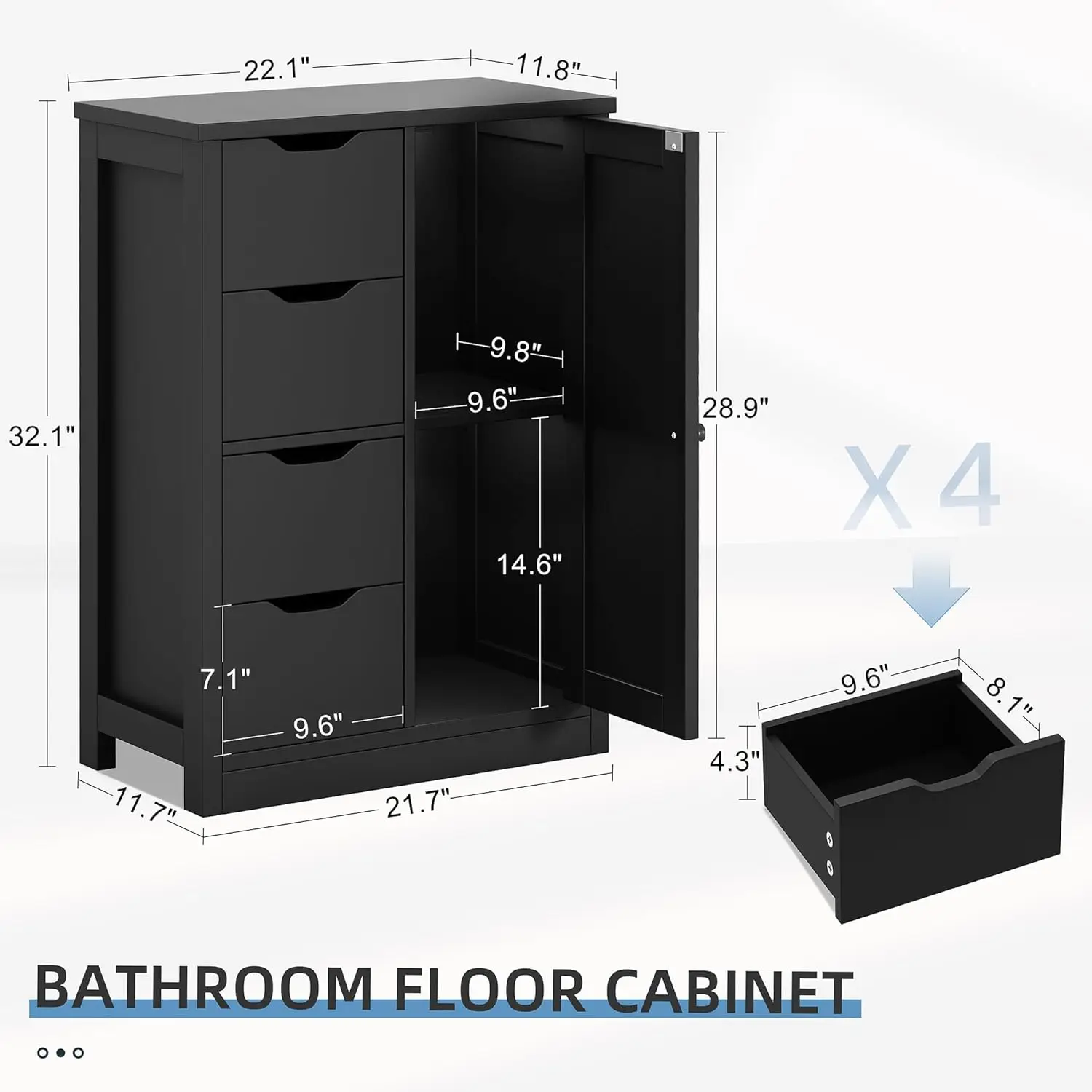 - Space Saver: The bathroom storage organizer is equipped with 4 drawers and 1 side cupboard. Putting your messy supplies in with an orderly manner, making your room clean and tidy