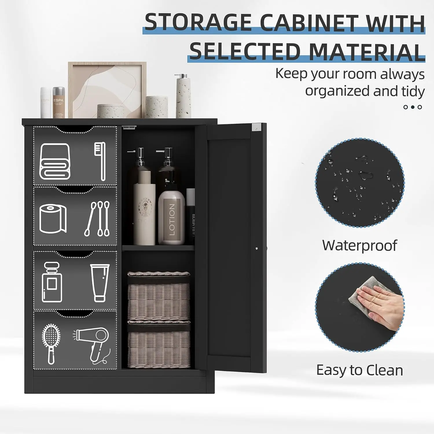 - Easy to Clean: The waterproof coasting provides effective protection against moisture and are also easy to clean. Ideal storage unit for your bathroom and kitchen