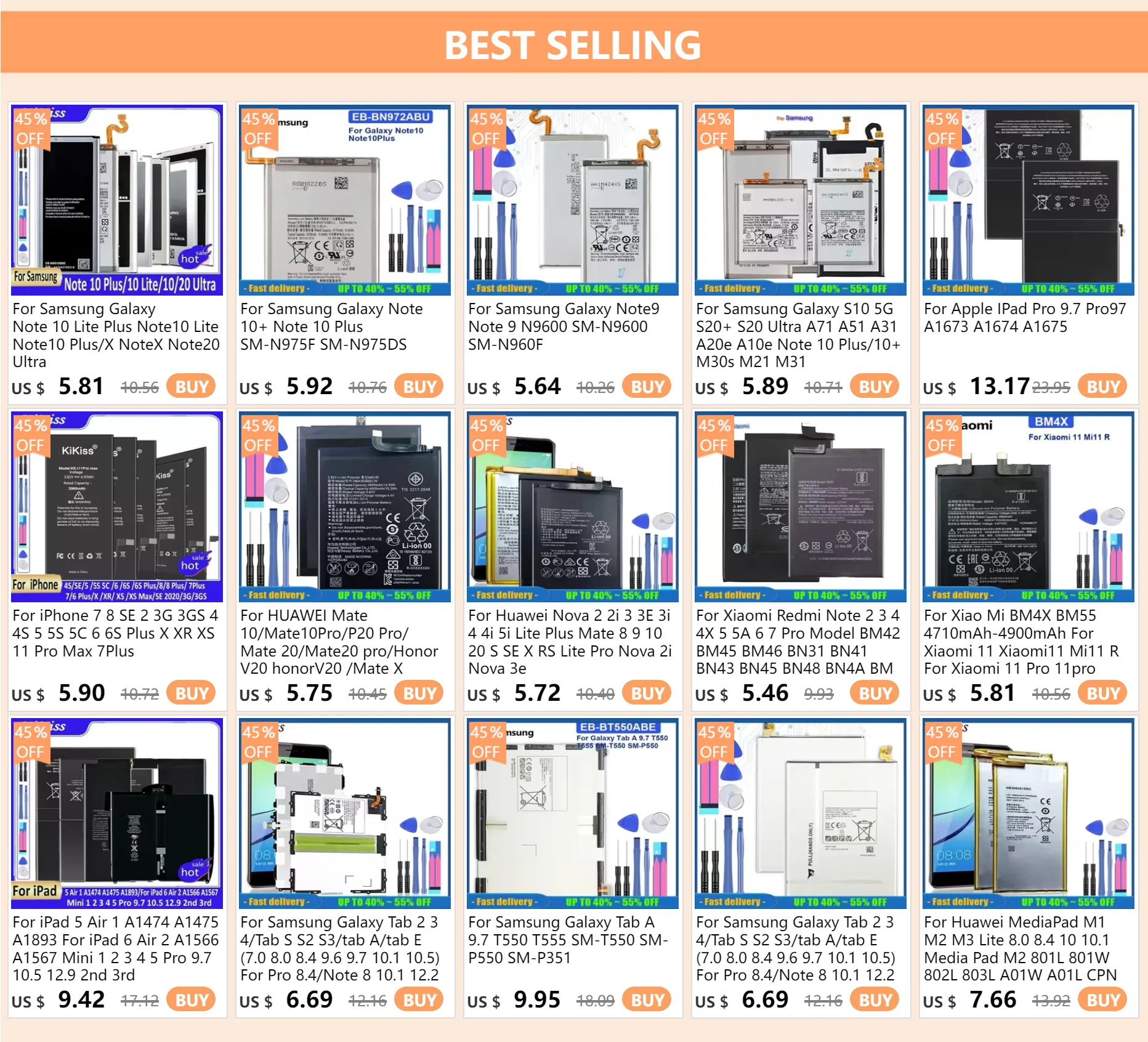Battery For Samsung Galaxy S8 S9 Plus S10e S10 S20 Ultra S21 FE S10x Note 10 Plus 8 S7 Edge S6 S5 A50 A30 A30S G930 Batteries