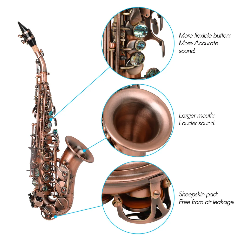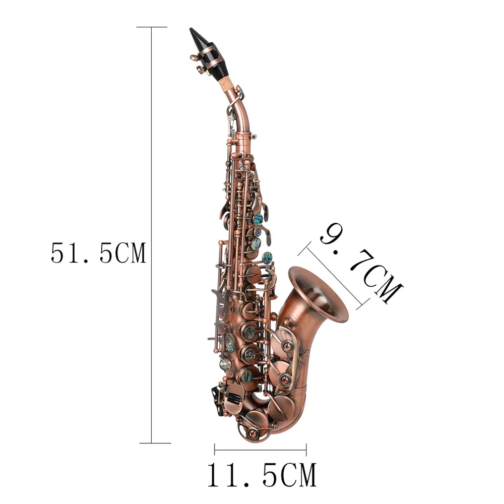 Bb Key Saxophone Red Antique Soprano Saxophone Woodwind Instrument with Case Sax Stand Reed Gloves Cleaning Cloth Brush