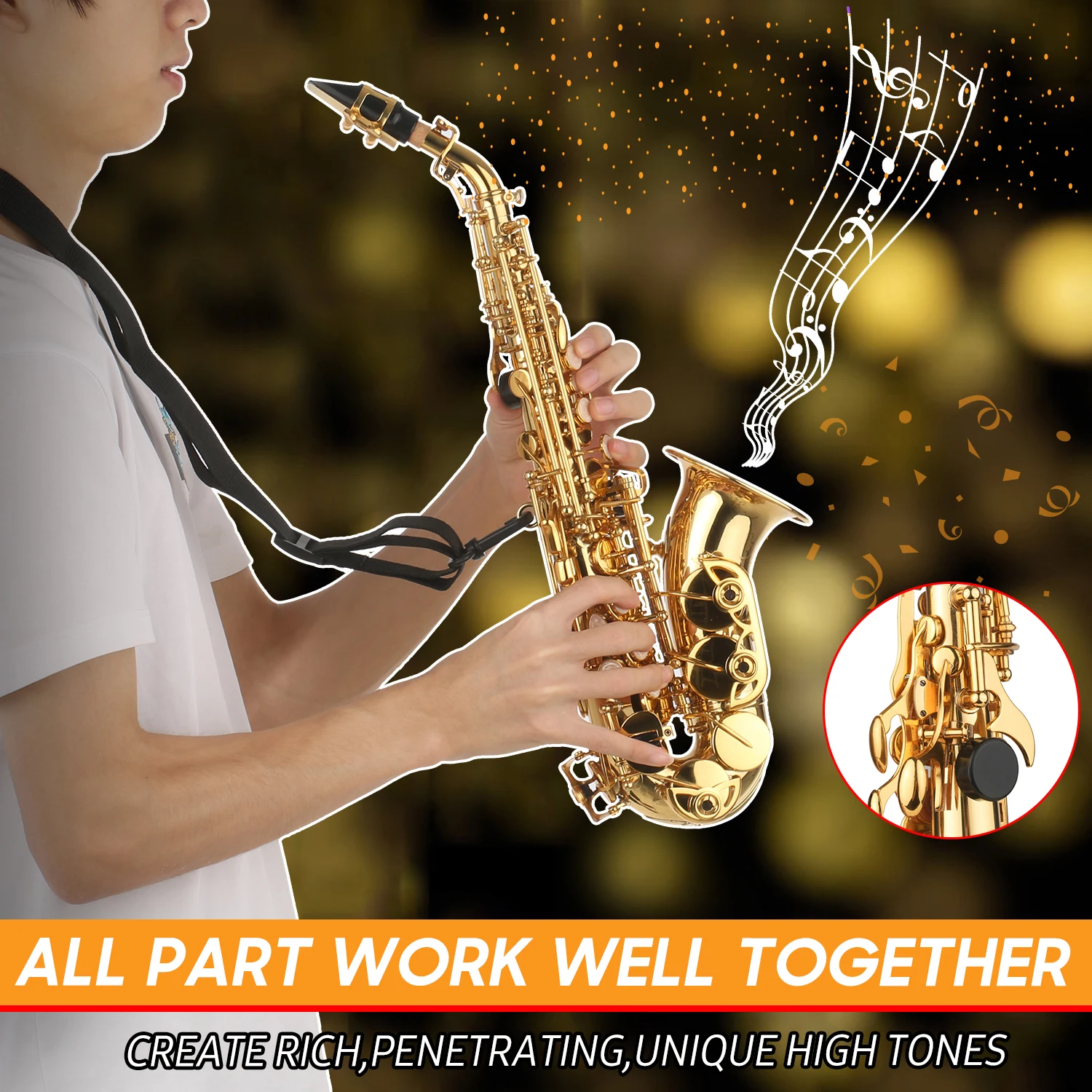 High quality material: sax, all brass construction, from the neck to the bell, solid strong, long lasting.