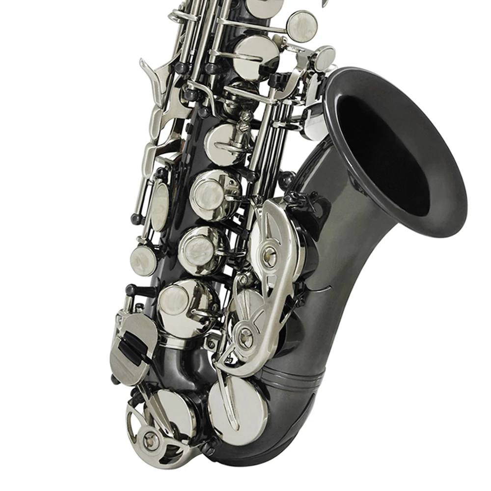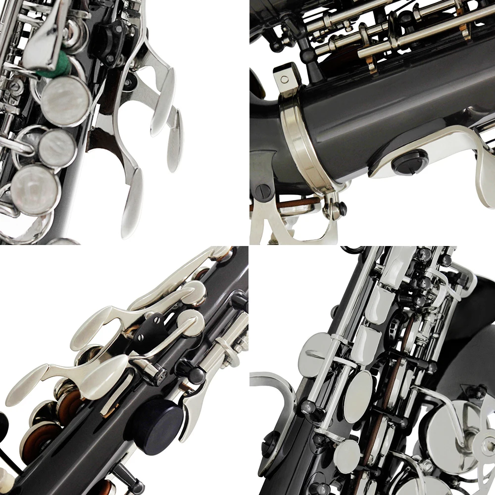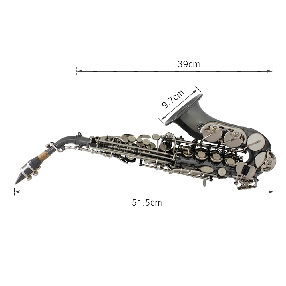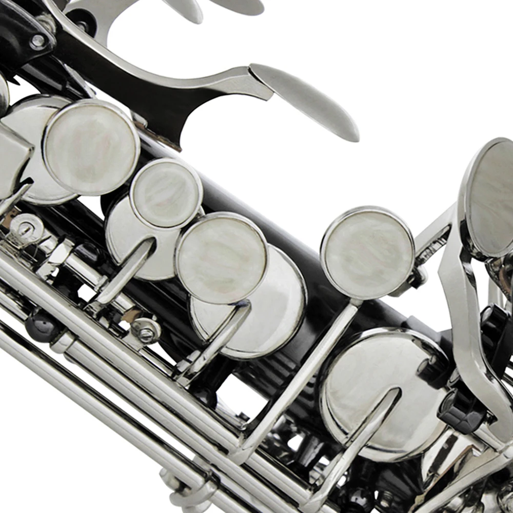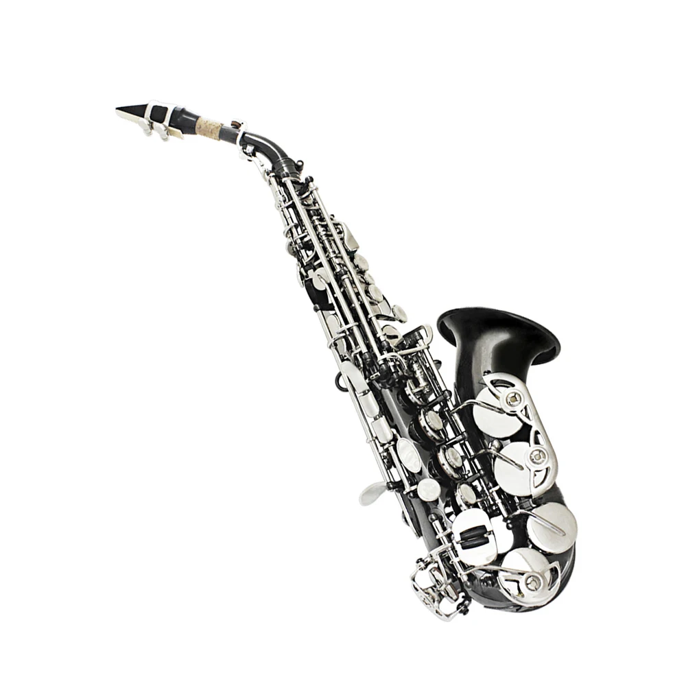 Bb Soprano Saxophone Sax Brass Material Black Nickel Plated Woodwind Instrument with Carry Case Gloves Cleaning Cloth Brush