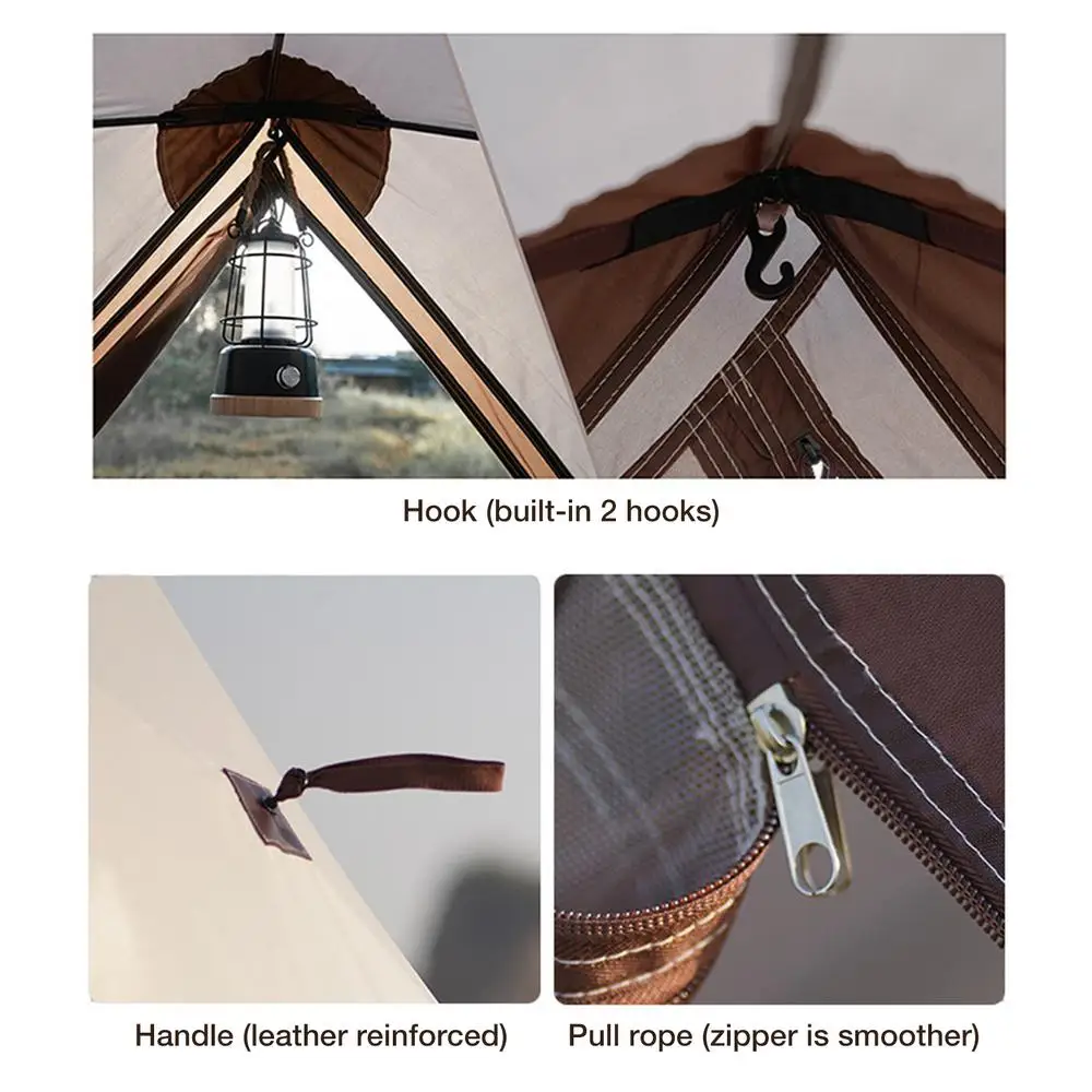 2.Practical and Functional: Enjoy hassle-free camping with our outdoor tent's triangular design and auto-open feature for quick pitch. The spacious and stable design creates a no-dead-corner haven, making your outdoor experience a breeze.
