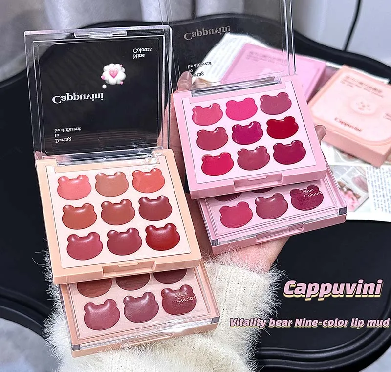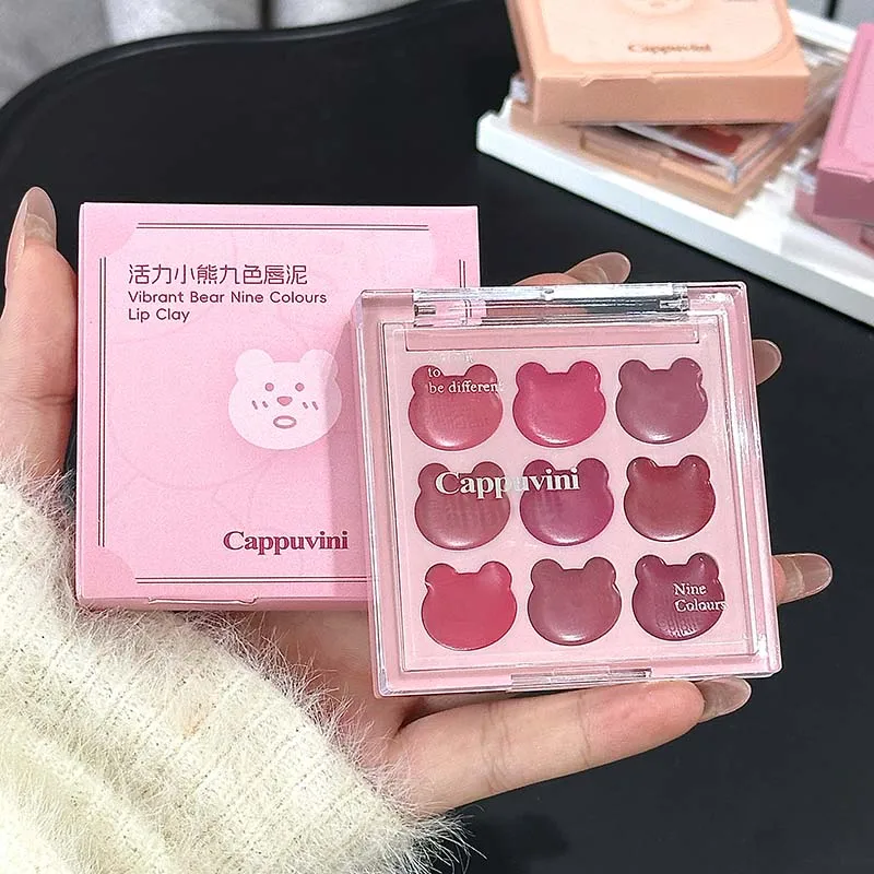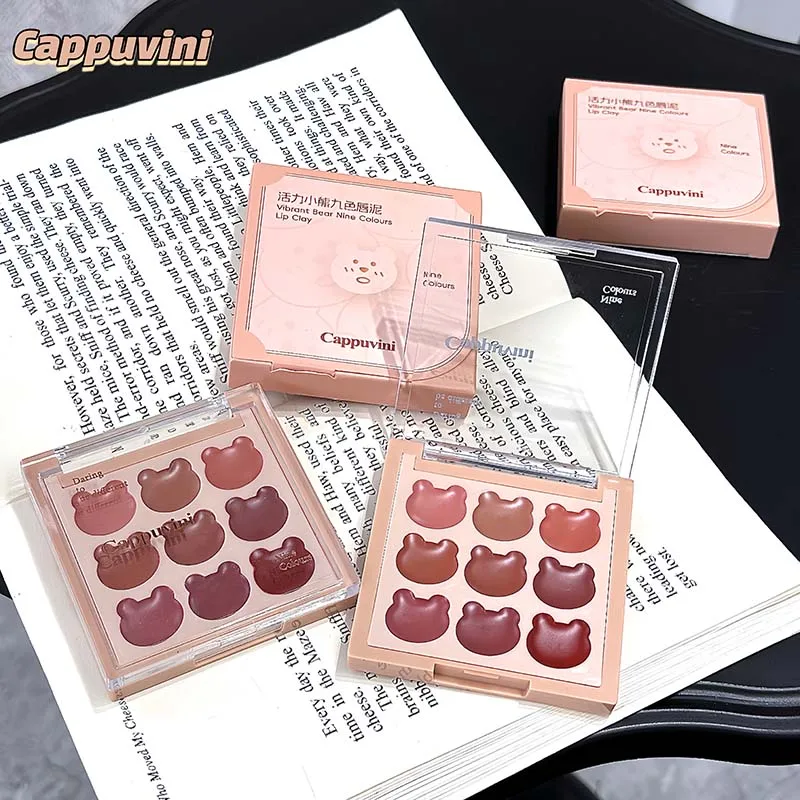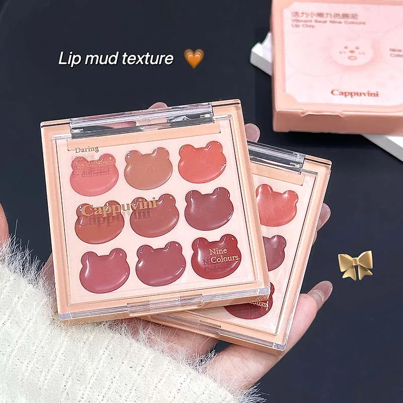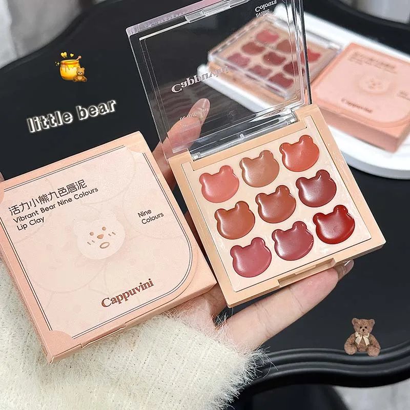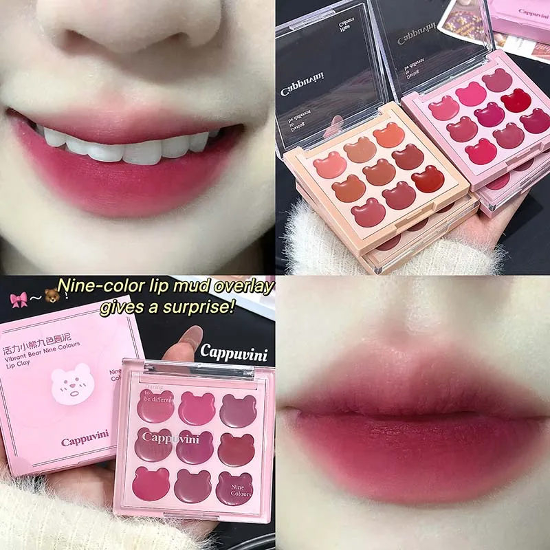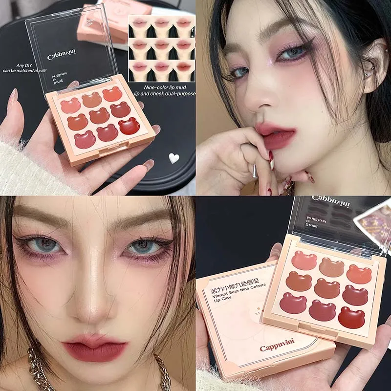Bear Lip Clay 9-color Lipstick Palette Matte Velvet Deep Berry Plum Red Lip Cheeks Dual Use Mud Moisturizing DIY Overlay Makeup
