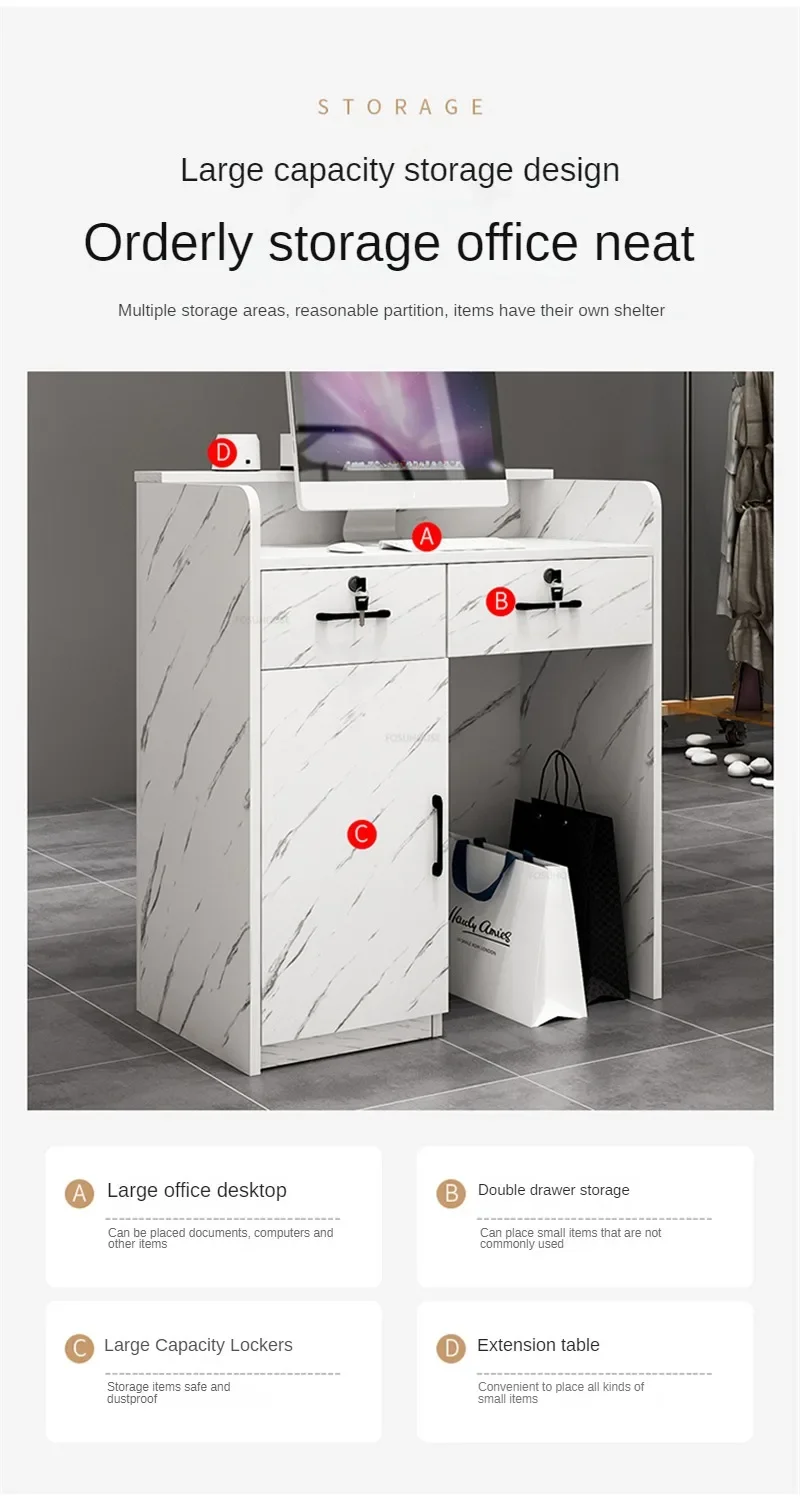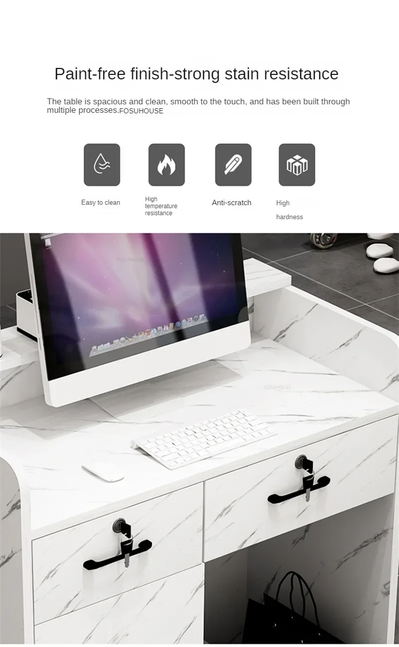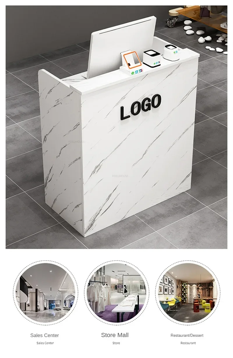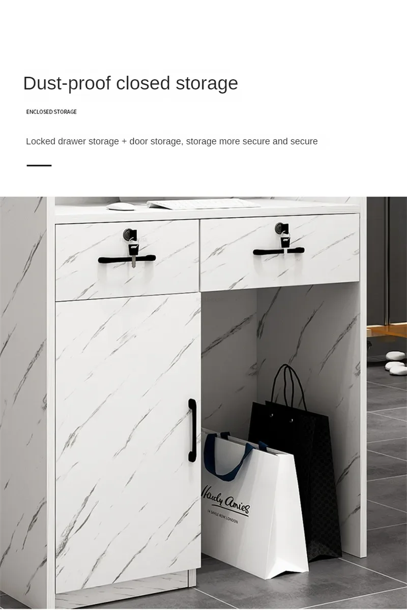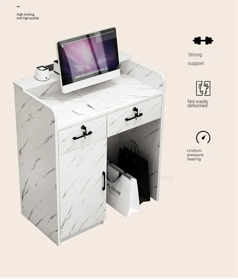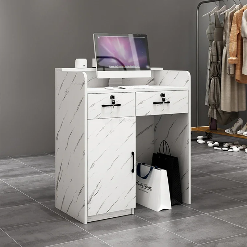Beauty Salon Marbling Reception Desks Nordic Cashier Counter with Drawer Simple Shop Bar Small Front Desk Retro Office Furniture