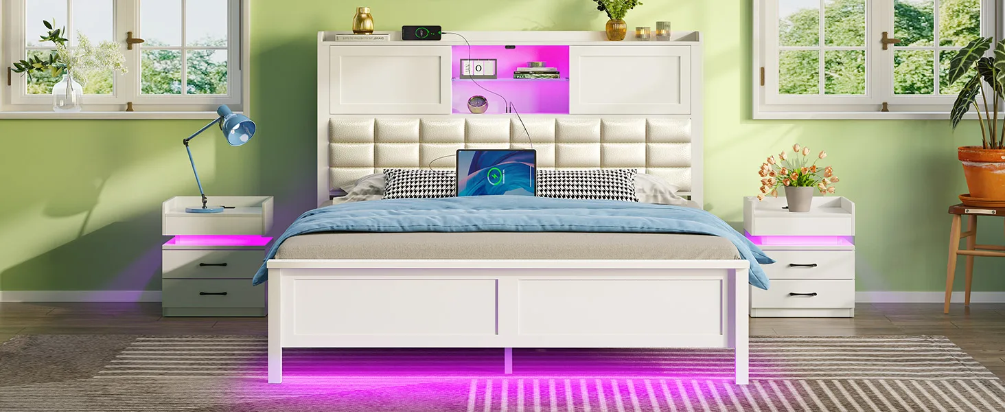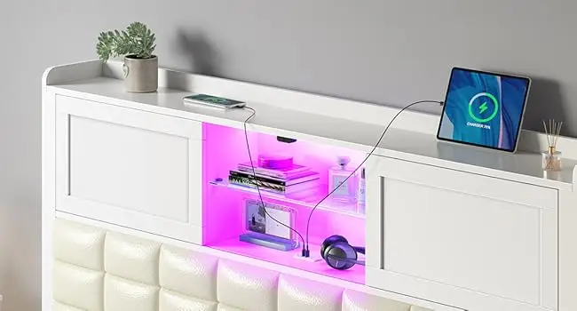 A convenient power outlet (2 USB ports + 1 Type-C) which is located at the mid-shelf of the headboard, great for keeping your phone/ laptop charged while entertaining in bed without getting up from your bed