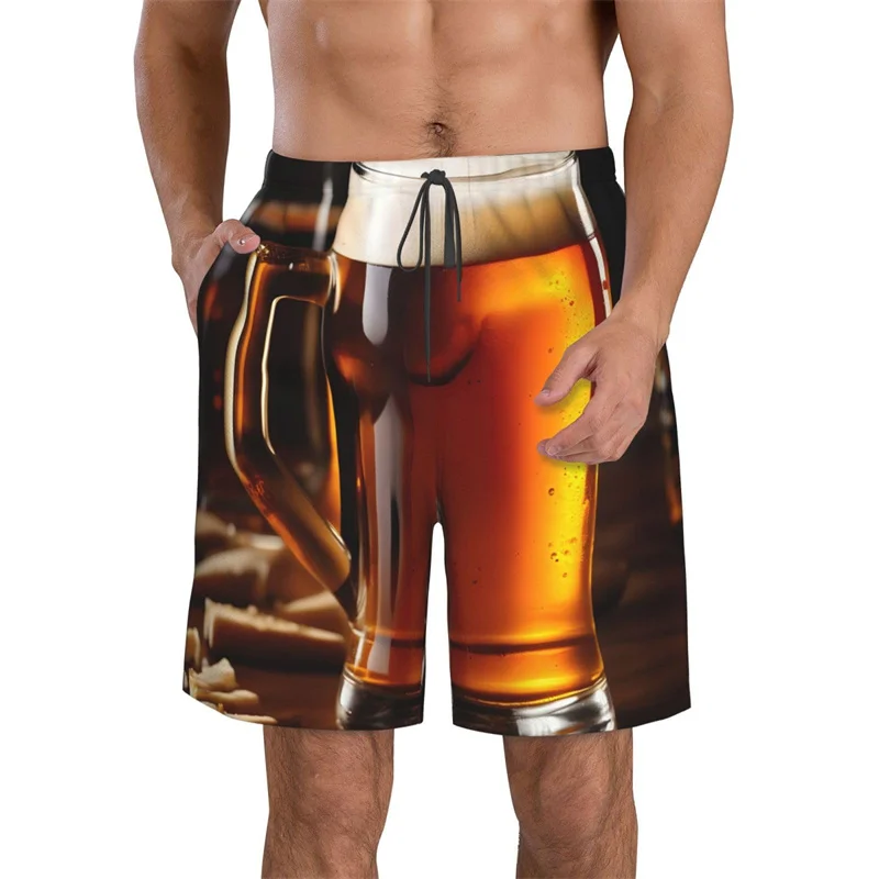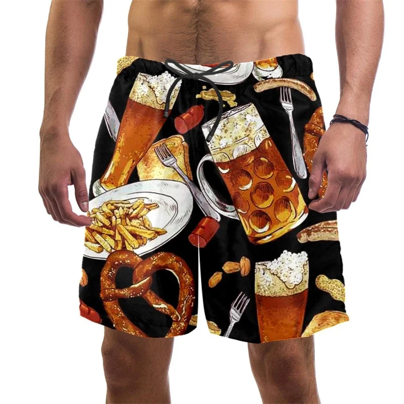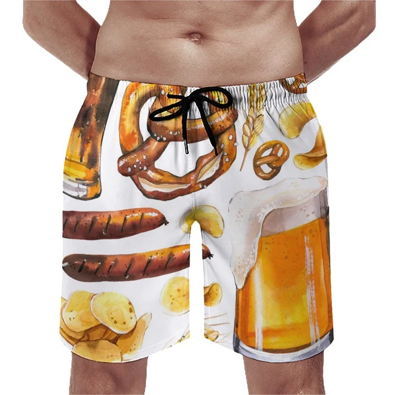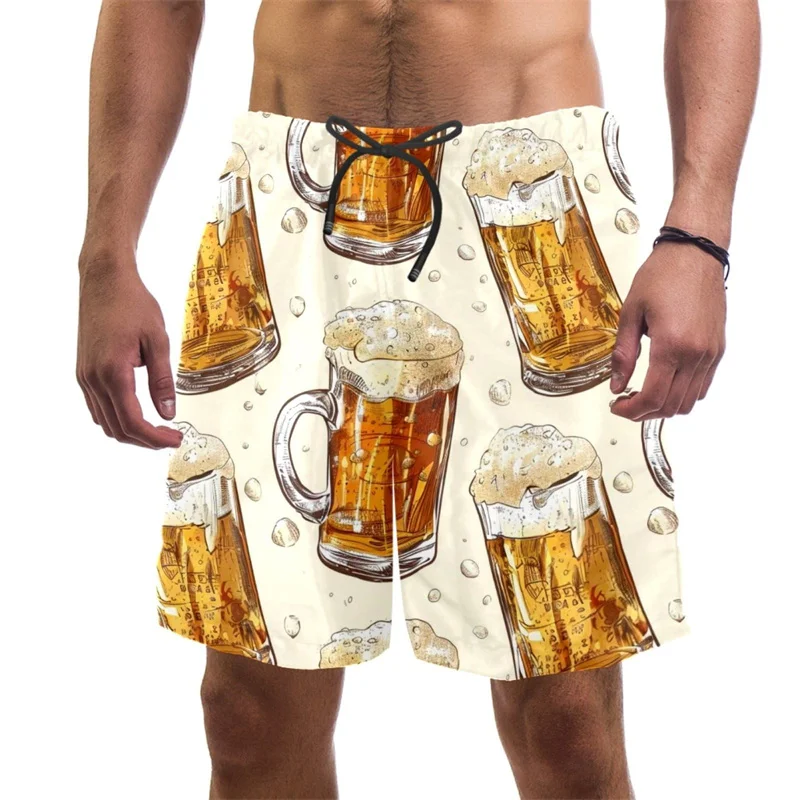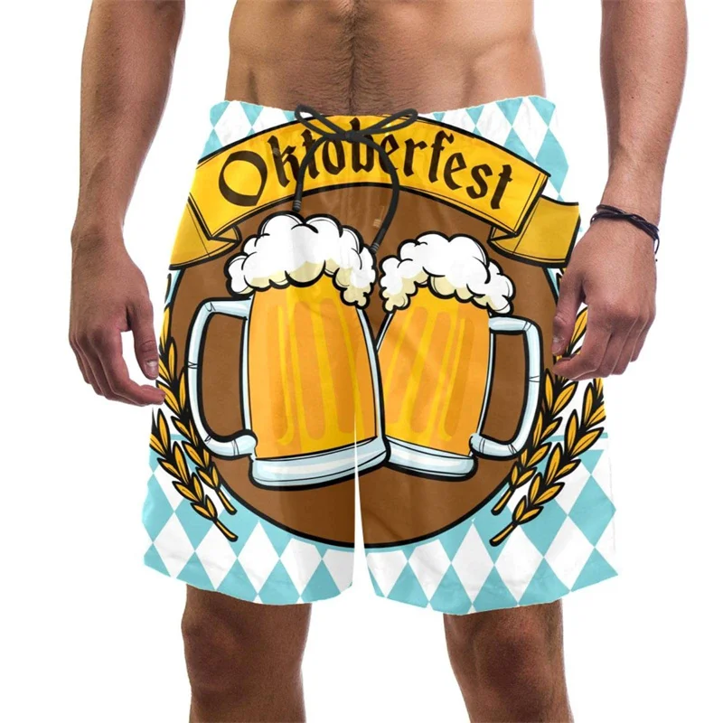 Beer Pattern Beach Shorts For Men Hawaiian Summer Holiday Casual Shorts Street 3d Printed Beer Festival Surfing Board Shorts