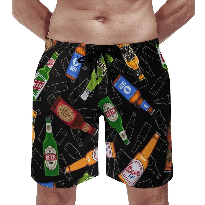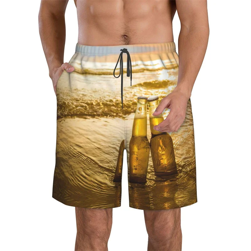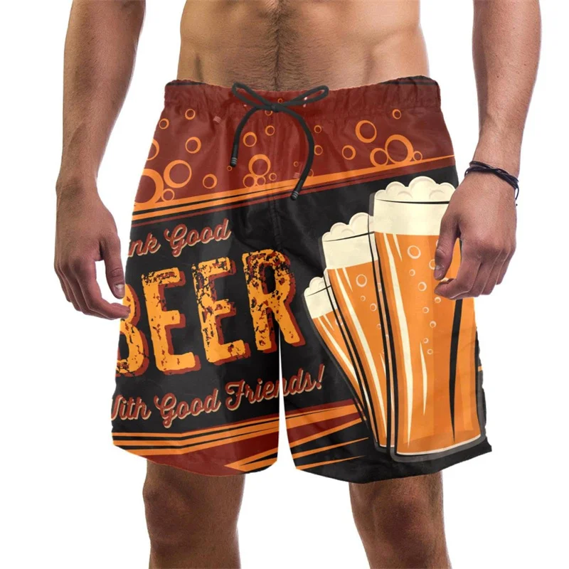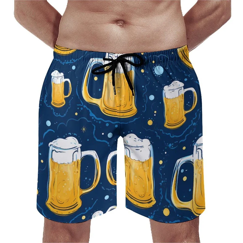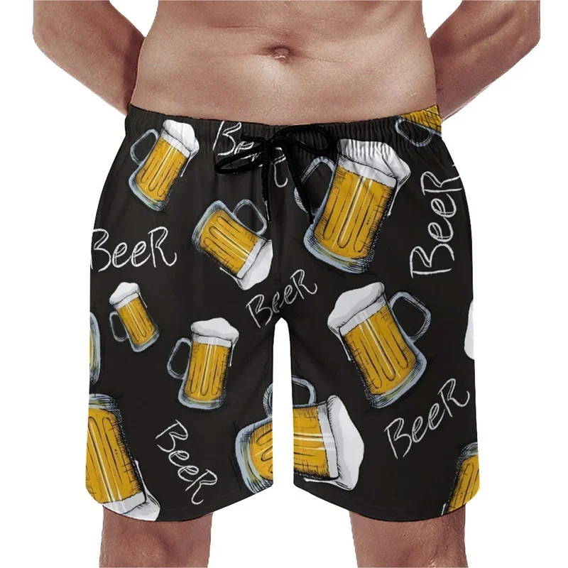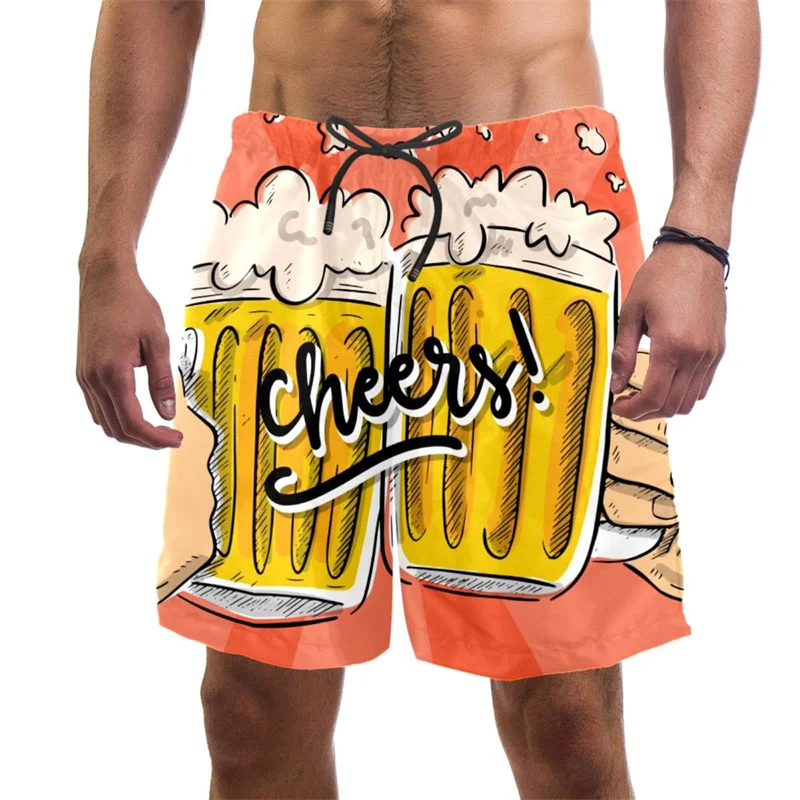 Beer Pattern Beach Shorts For Men Hawaiian Summer Holiday Casual Shorts Street 3d Printed Beer Festival Surfing Board Shorts