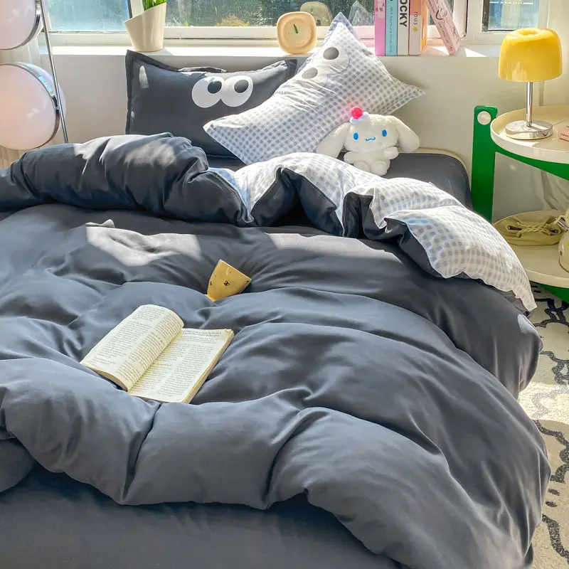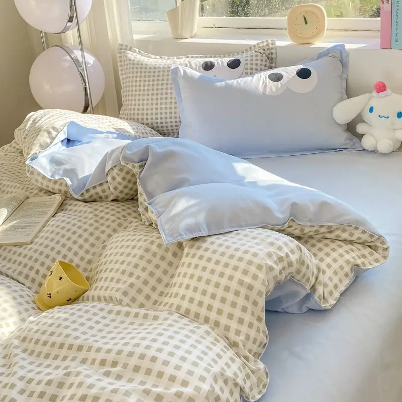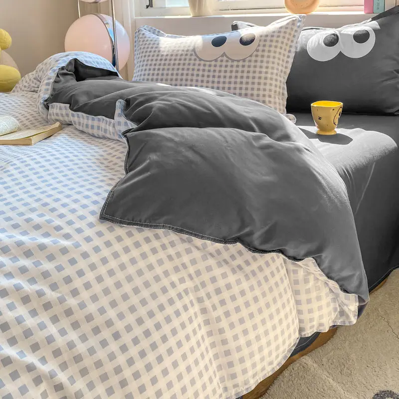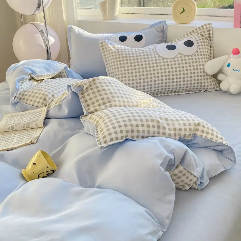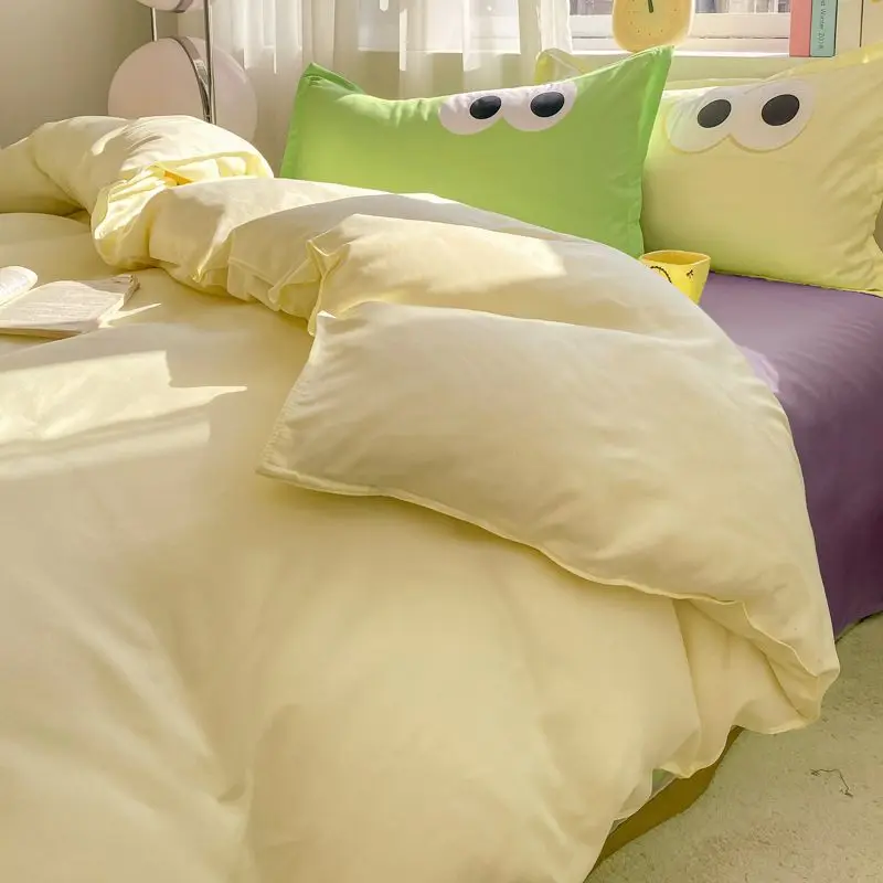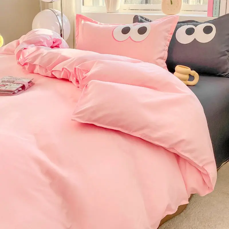 Big Eyes INS Style Duvet Cover Home Bedding Set Solid Sheet Pillowcase Soft Cover No Filling Warm Bed Linen Twin Full Queen Size