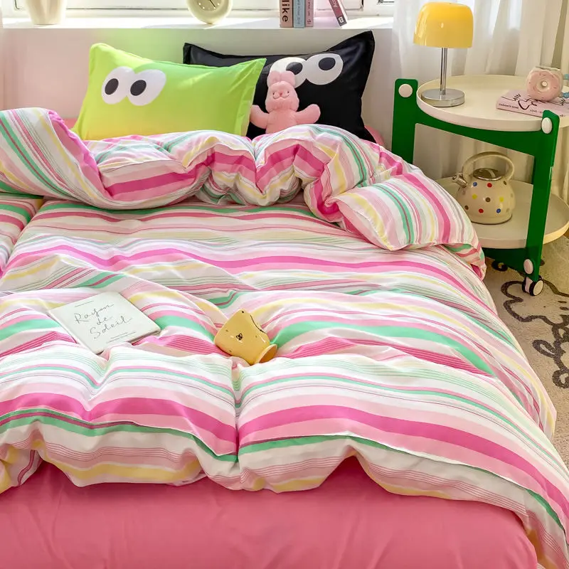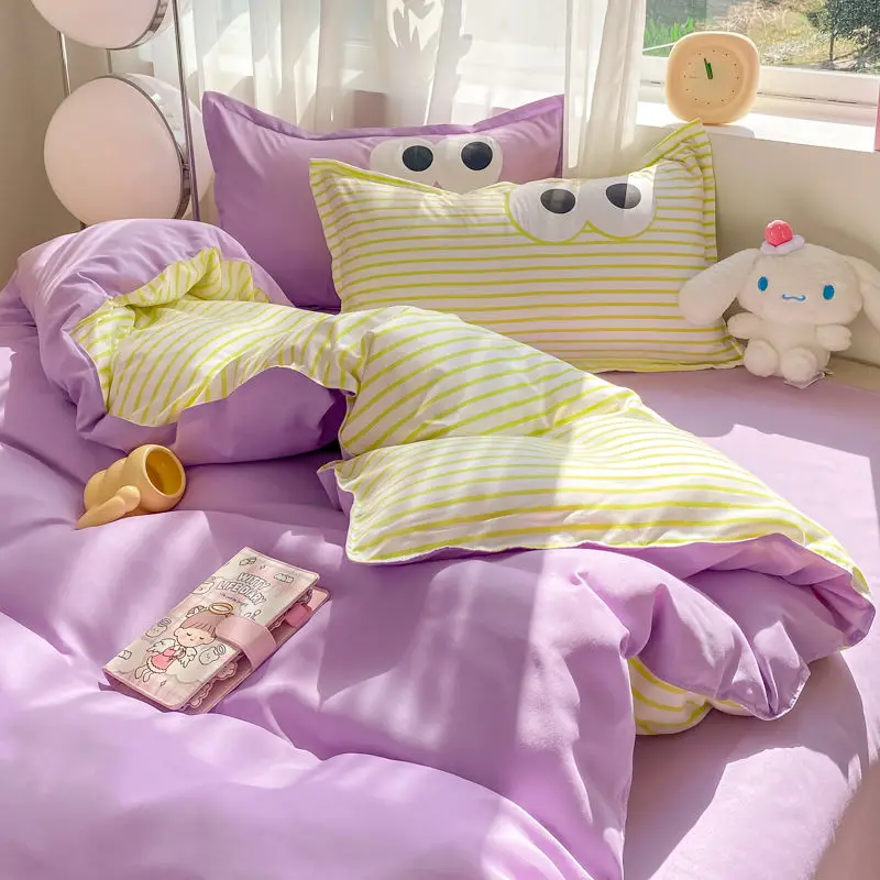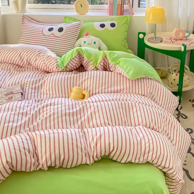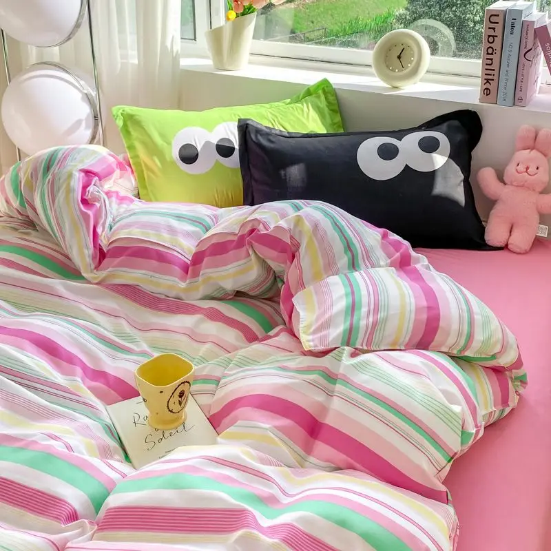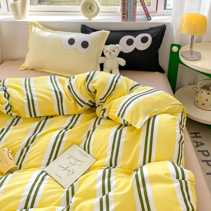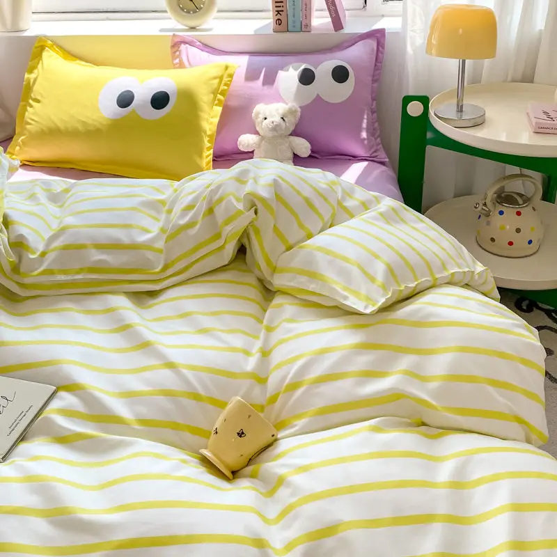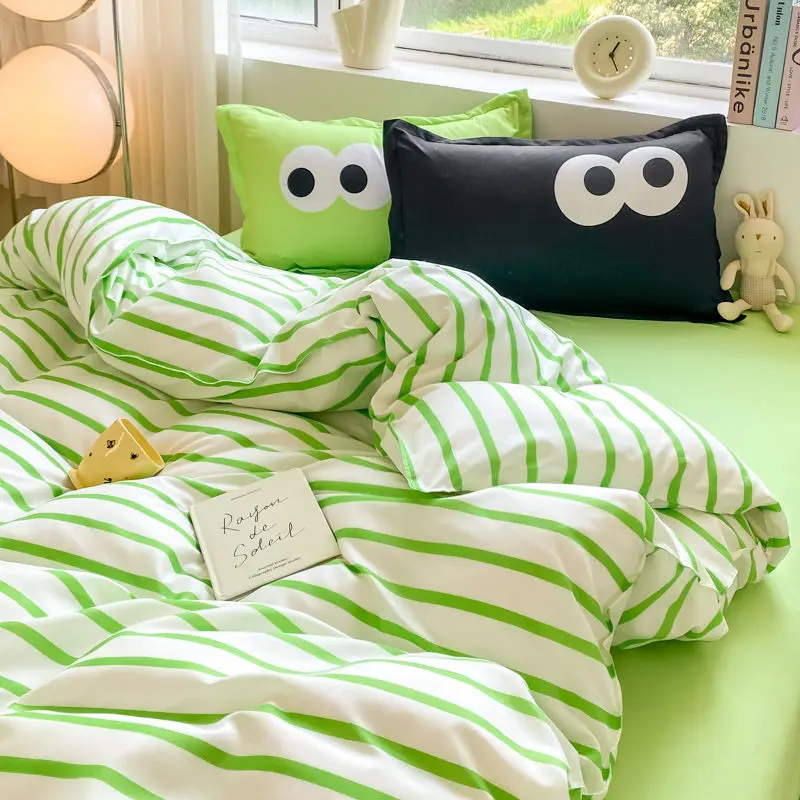 Big Eyes INS Style Duvet Cover Home Bedding Set Solid Sheet Pillowcase Soft Cover No Filling Warm Bed Linen Twin Full Queen Size