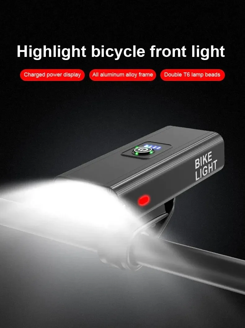 Bike Light Headlight T6 Bicycle Flashlight LED USB Rechargeable Waterproof MTB Cycling Front Lamp High Beam Bike Accessories