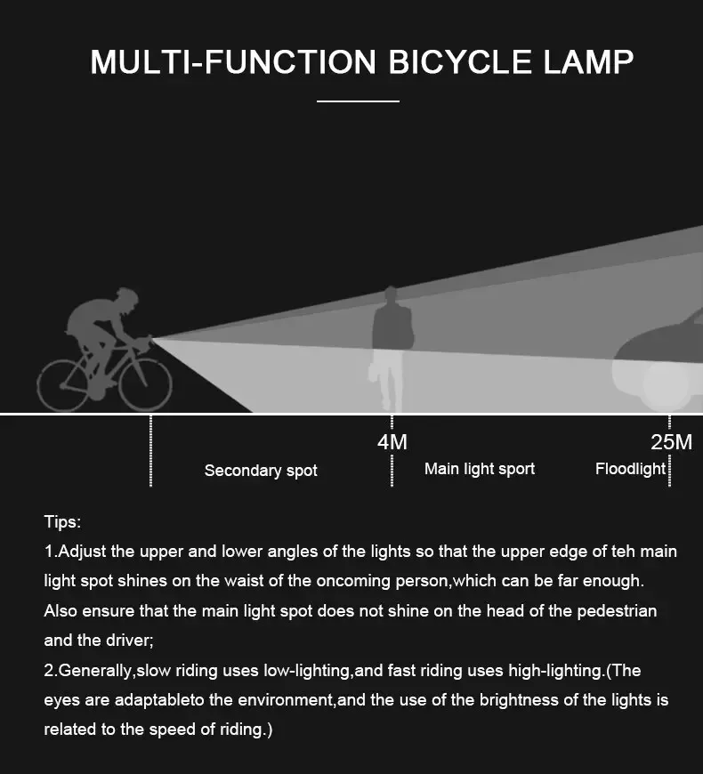 Large floodlight, no blind spots in cycling lighting, making cycling safer