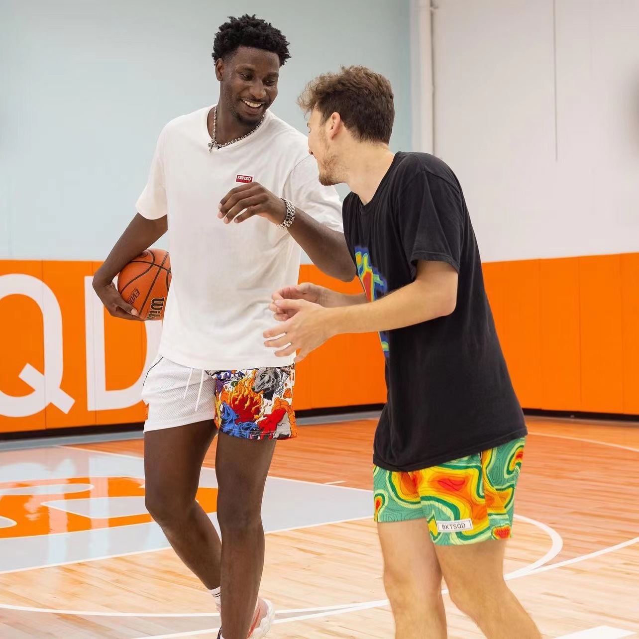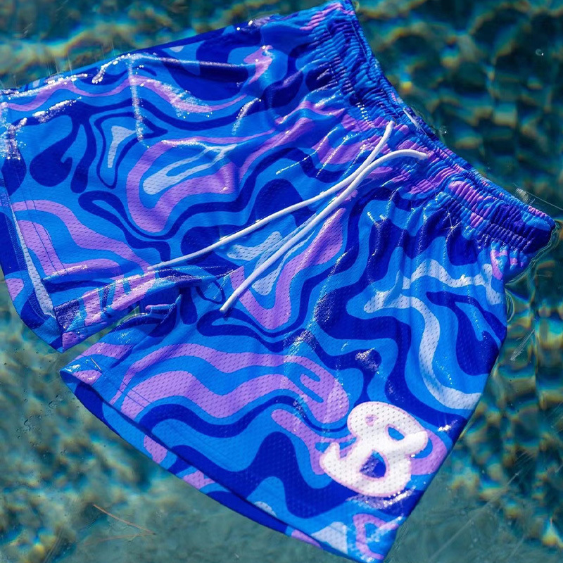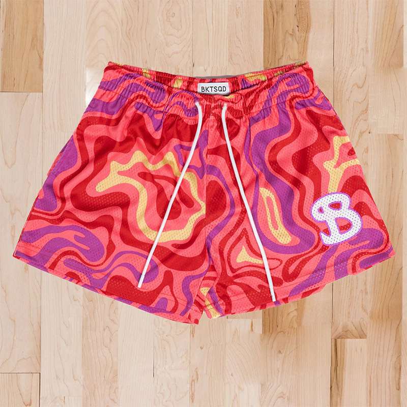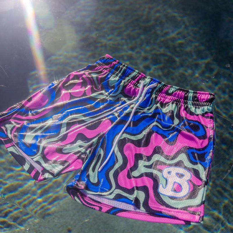 BKTSQD New summer men’s shorts men and women’s fashion beach seaside sports shorts mesh sports quick-drying quarter pants