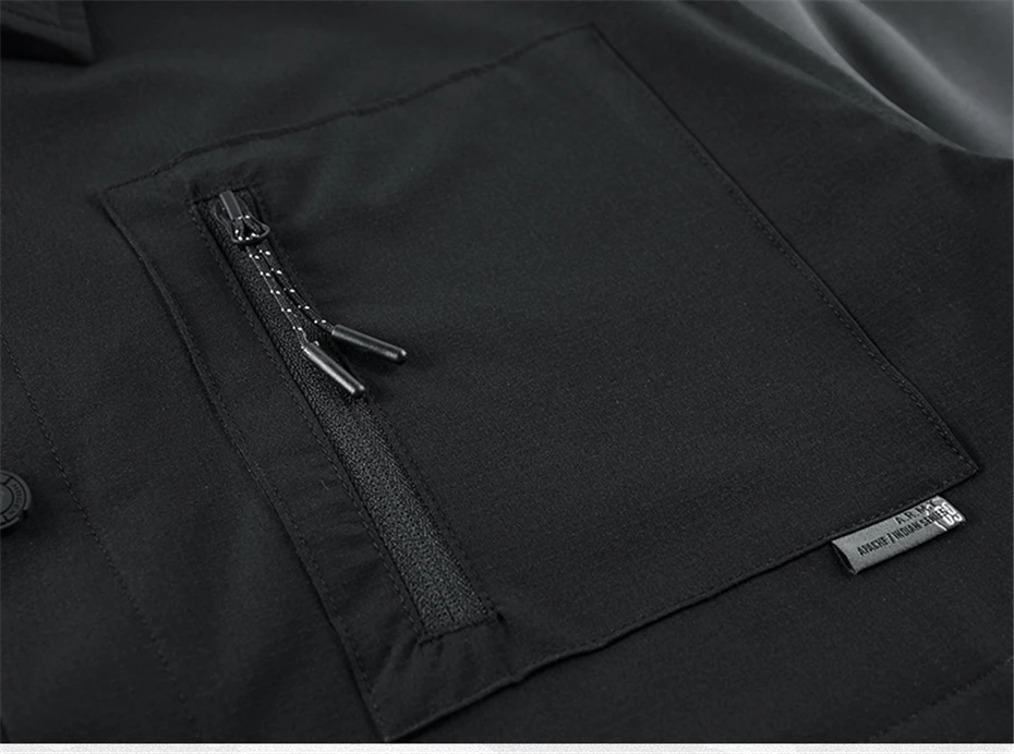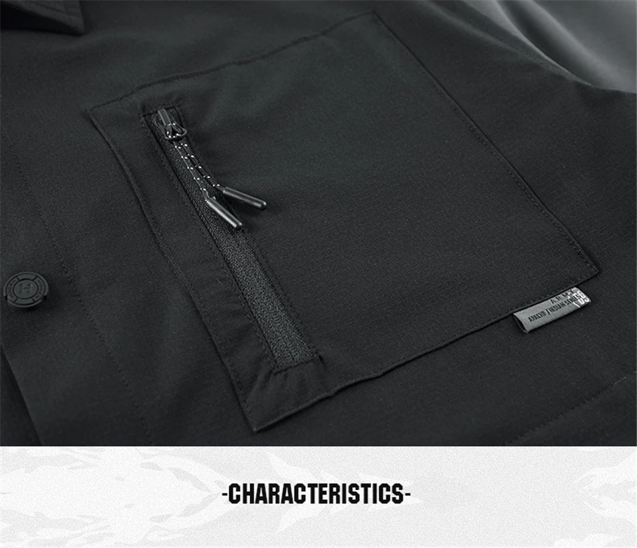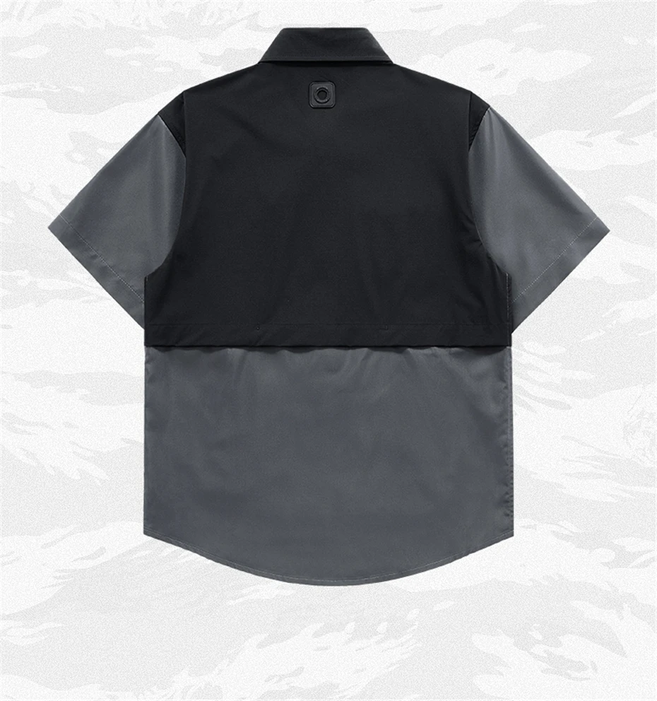 Black Cargo Shirt Men Summer Short Sleeve Shirts Multiple Pockets Techwear Tactical Button Tops Streetwear Patchwork Shirts Male